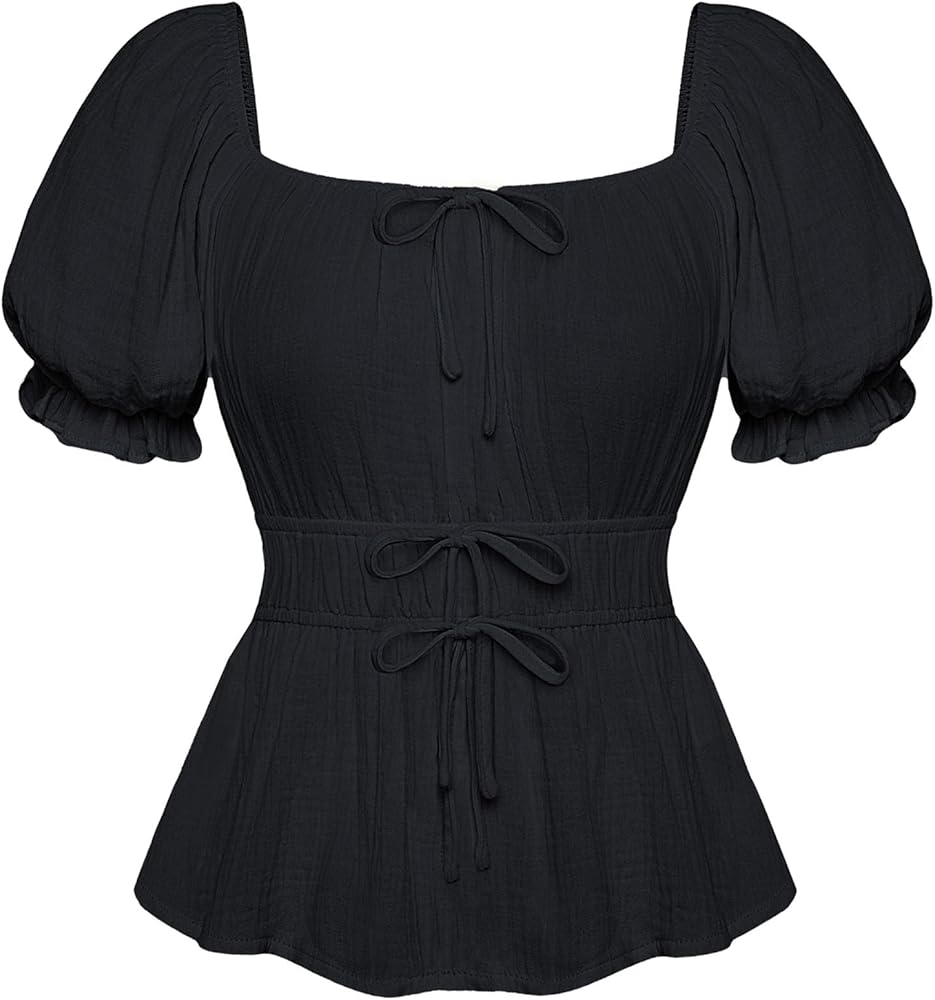 ROMANTIC DESIGN - Embrace timeless elegance with our women's cottagecore top, featuring a flattering tie-front detail and charming puff sleeves for a touch of romance in your modern wardrobe