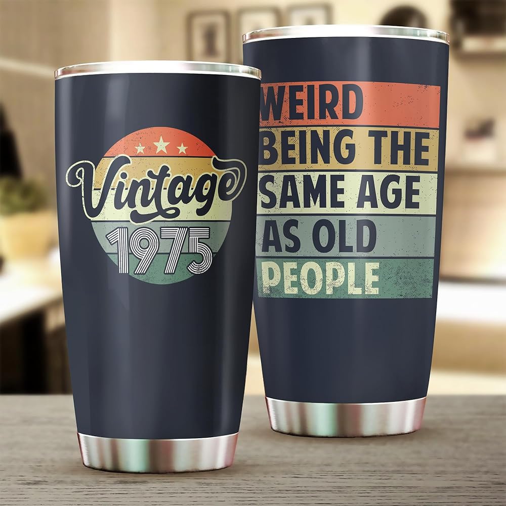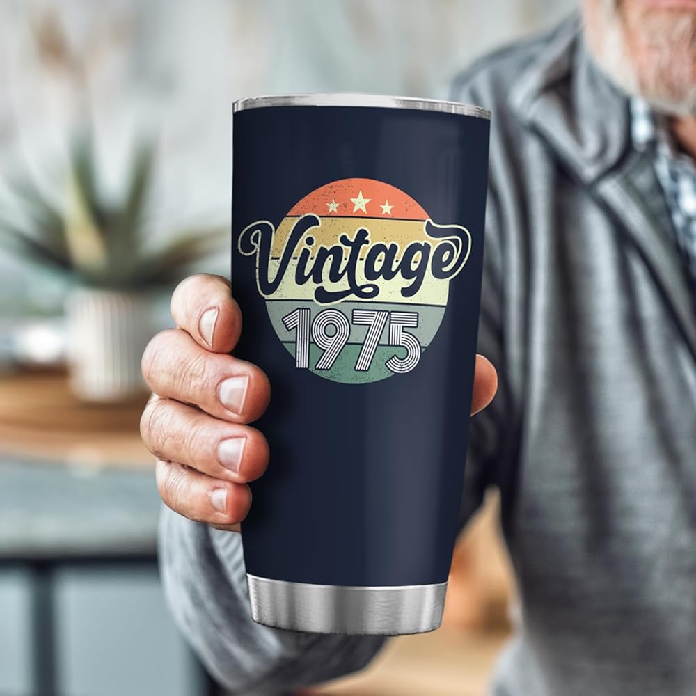 50 Years Old 1975 20 Oz Tumbler – 50th Birthday Gift for Men, Women, Mom, Dad, Wife, Husband, Grandpa, or Grandma, Funny 50-Year-Old Gift & Birthday Decoration