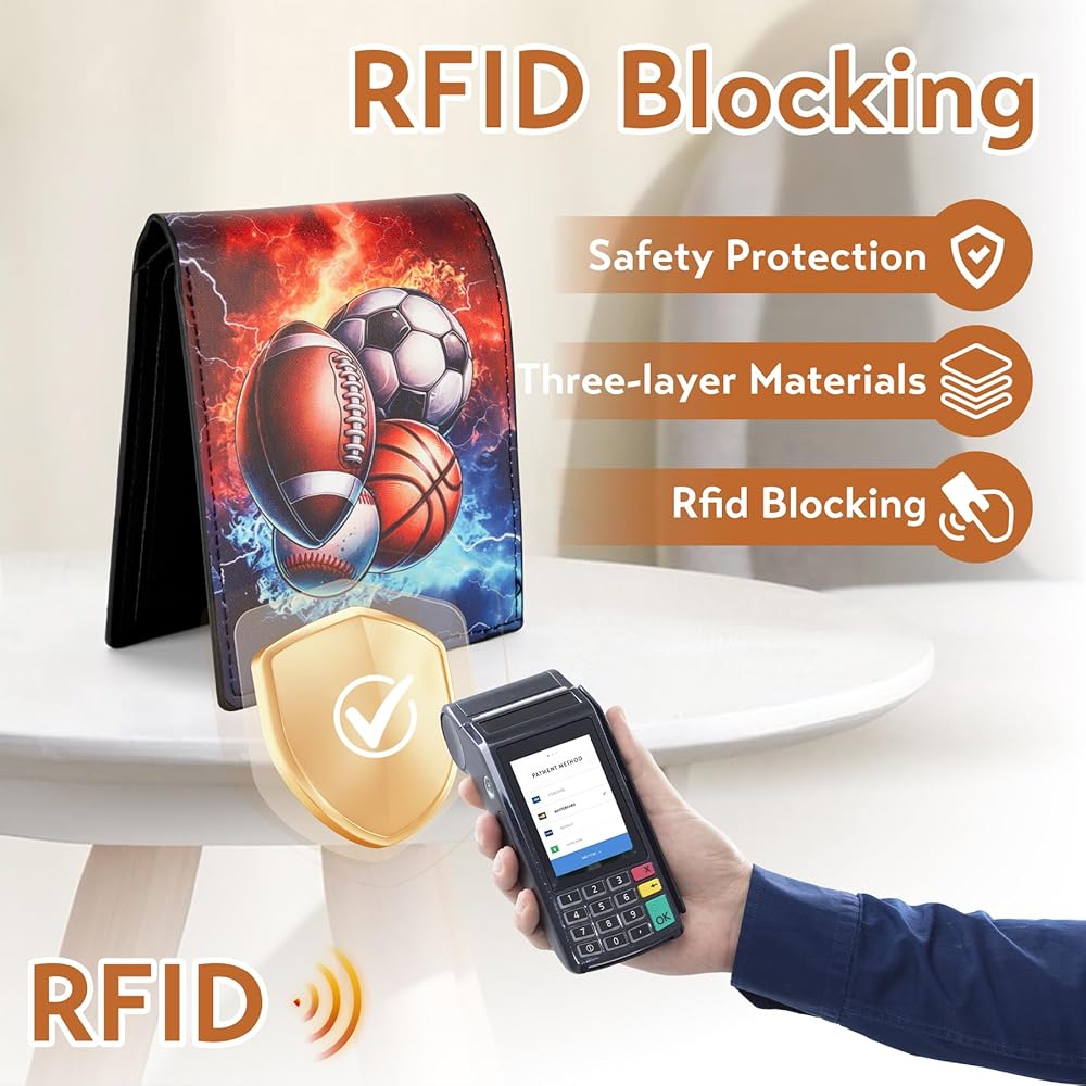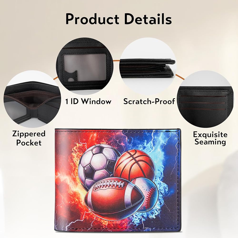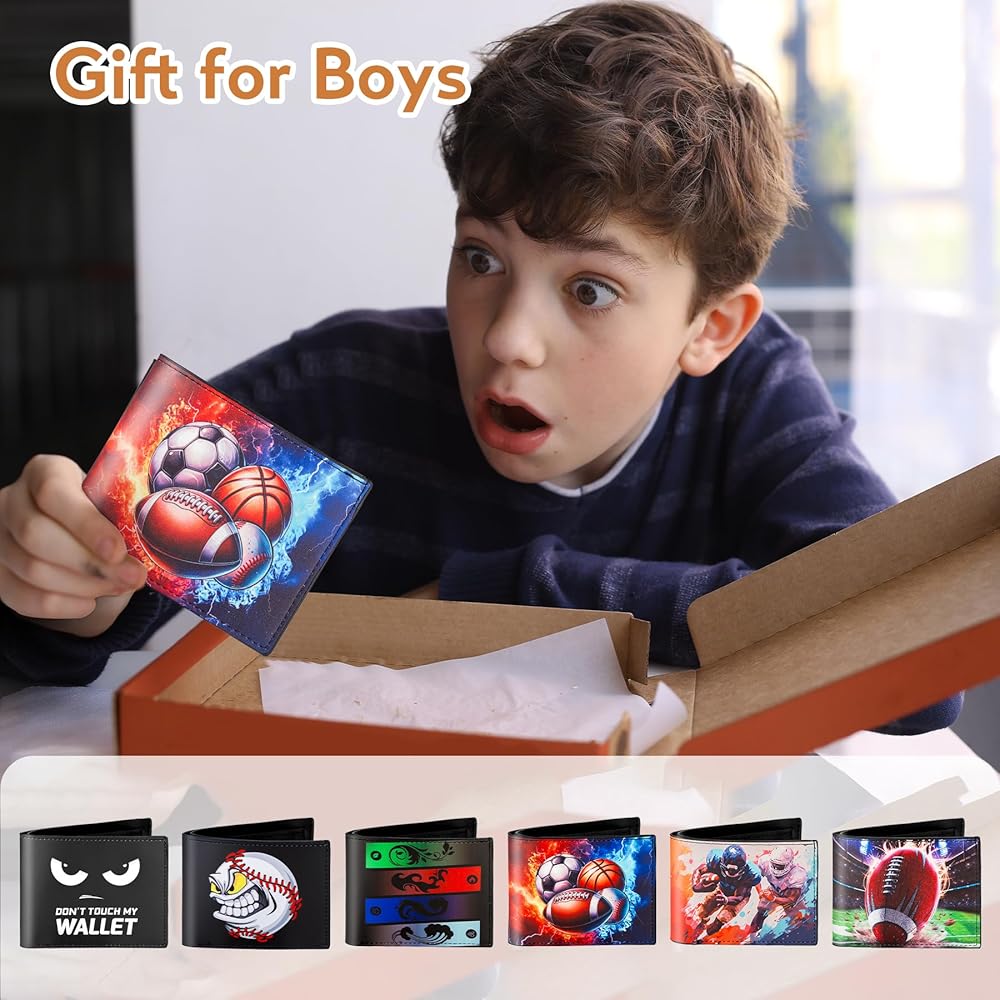 Teen Boys Wallet, Birthday Gift - 5 6 7 8 9 10 11 12 Year Old Boys, Cool Balls Bifold Rfid Blocking Leather Wallet With Coin Pocket ID Window, Christmas Birthday Gift - Boy Girls Teen 3-14 Ages