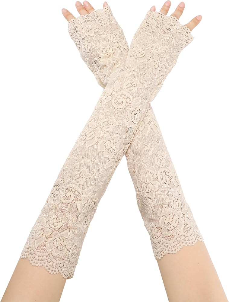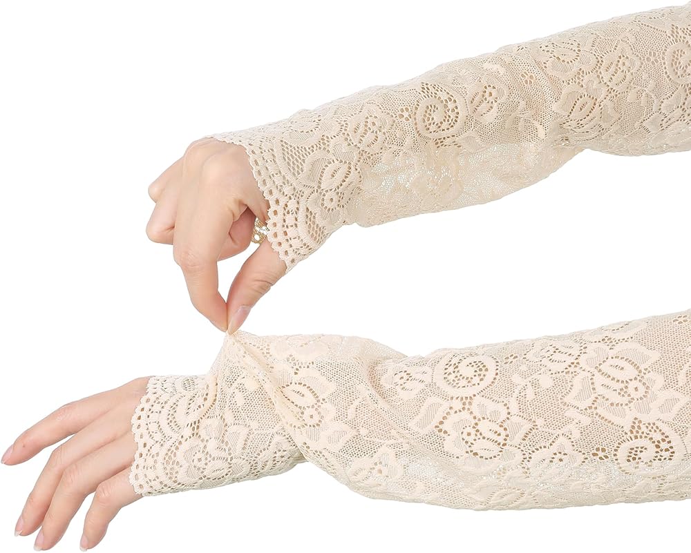Material: 100% Polyester. These arm sleeves, featuring a floral lace pattern, are made from a thin, lightweight, and breathable fabric that helps keep your arms cool while driving or joining in outdoor activities.