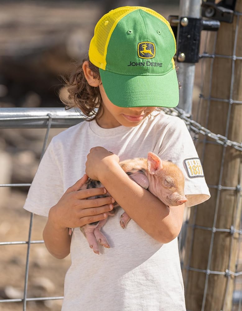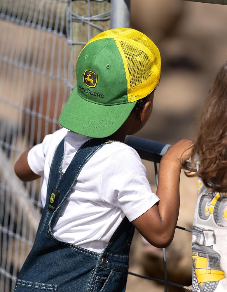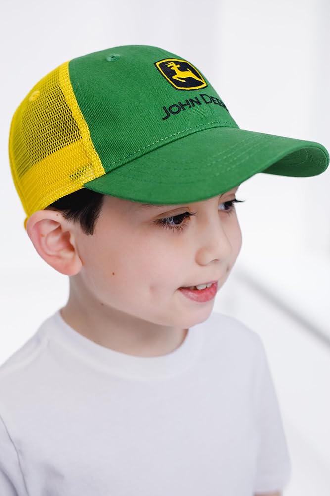 Enjoy the outdoors worry-free in these fashionable and comfy John Deere baseball caps! These sun-protecting trucker hats feature an adjustable snap back closure and breathable mesh backing for a comfortable fit and long-lasting wear. Designed with bold colors and iconic John Deere artwork such as their classic trademark logo and cool tractor design, these durable snapback hats are a stylish summer essential for your toddler and kid!