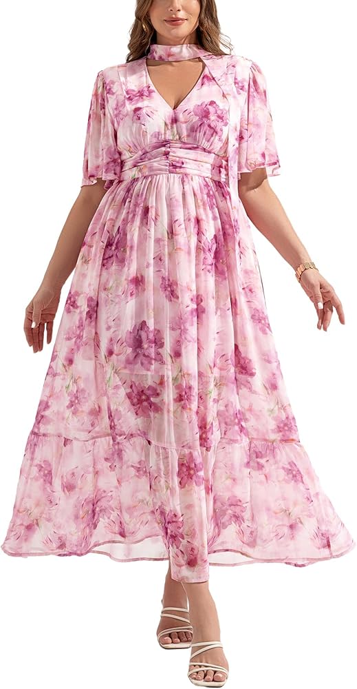 CHIC DESIGN: Casual Dresses for Women; Maxi Floral Dress; Plus Size Boho Dress; Date Night Dresses for Women; A Line Dress; Swing Dress; Flowy Dress; V Neck Maxi Dress; Holiday Dress; Going Out Dress; Tea Party Dress; Spring Wedding Guest Dress; Beach Maxi Dress For Women; smocked dress women; Lotus Leaf Sleeve Dress; Valentines Dress For Women