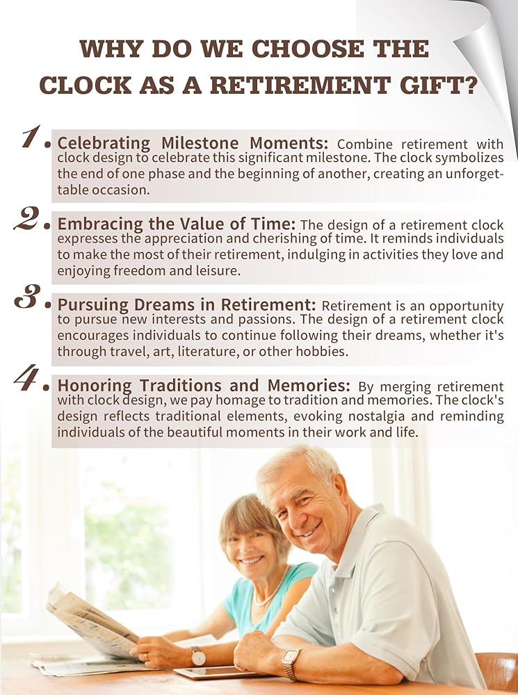 A TESTAMENT TO PERSONAL ACHIEVEMENTS: Our retirement clock is not just a time device; it's a tribute to personal achievements. It serves as a proud memento, reminding recipients to remember their past accomplishments and appreciate the journey that shaped them into the unique individuals they are today. It is a constant reminder of their value and contributions to society, making it a cherished gift that inspires joy and happiness in their retirement years.