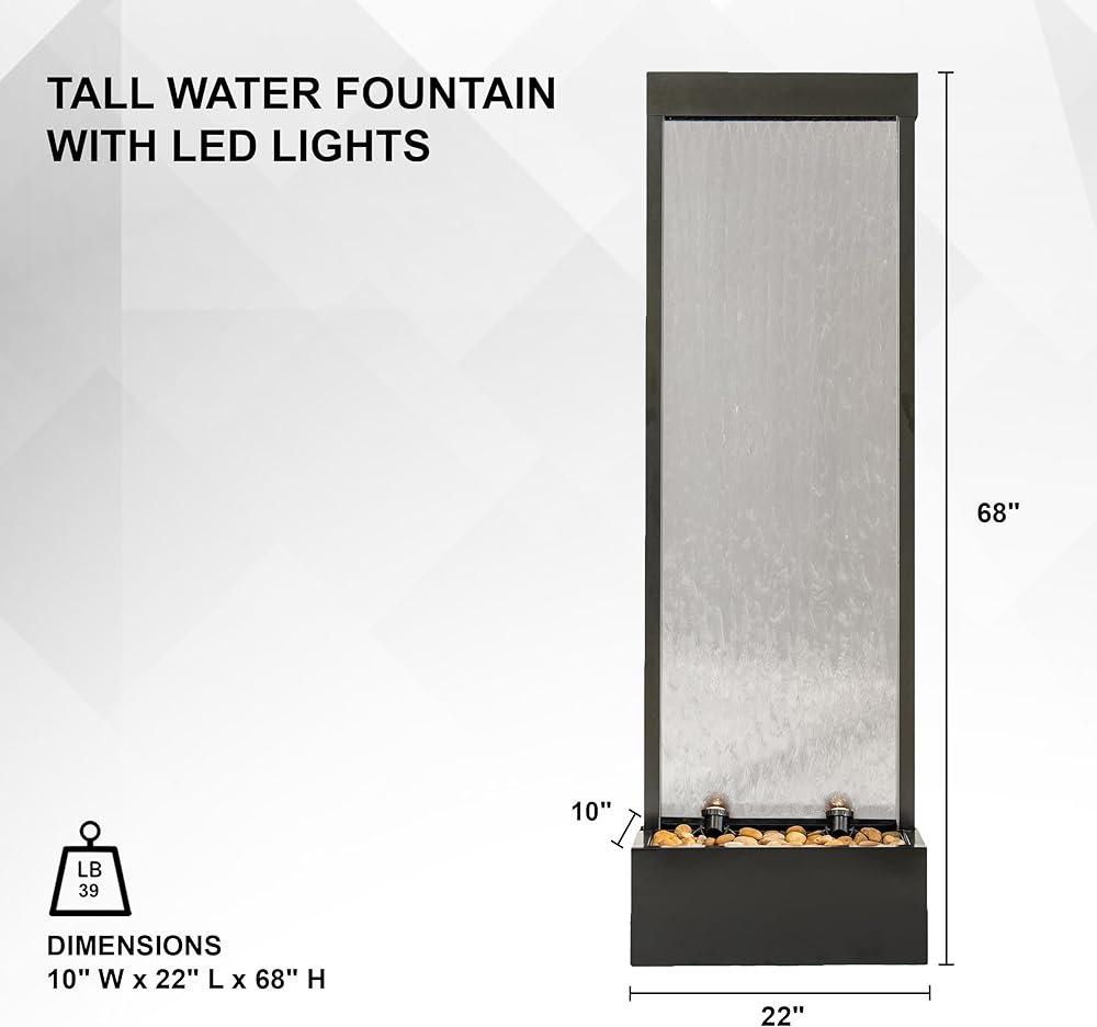 TALL AND STRIKING PRESENCE: Standing at an impressive 68 inches, this floor standing fountain brings a bold presence to any space. Its tall, freestanding design makes it a stunning focal point, whether placed as an outdoor water feature in a garden or as an indoor waterfall fountain in your home or office.