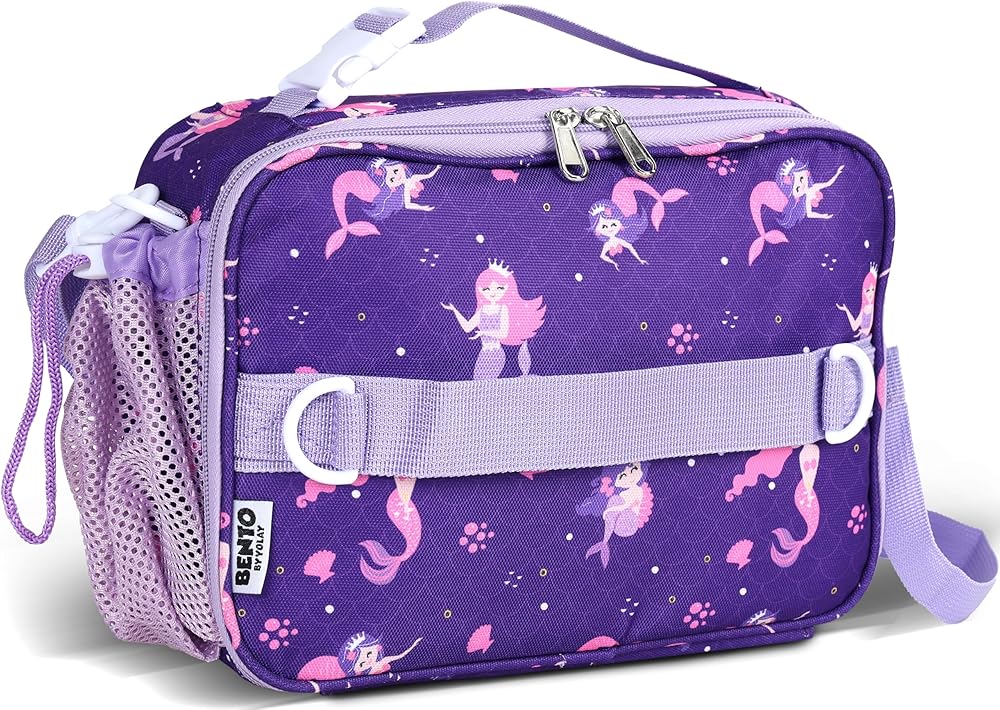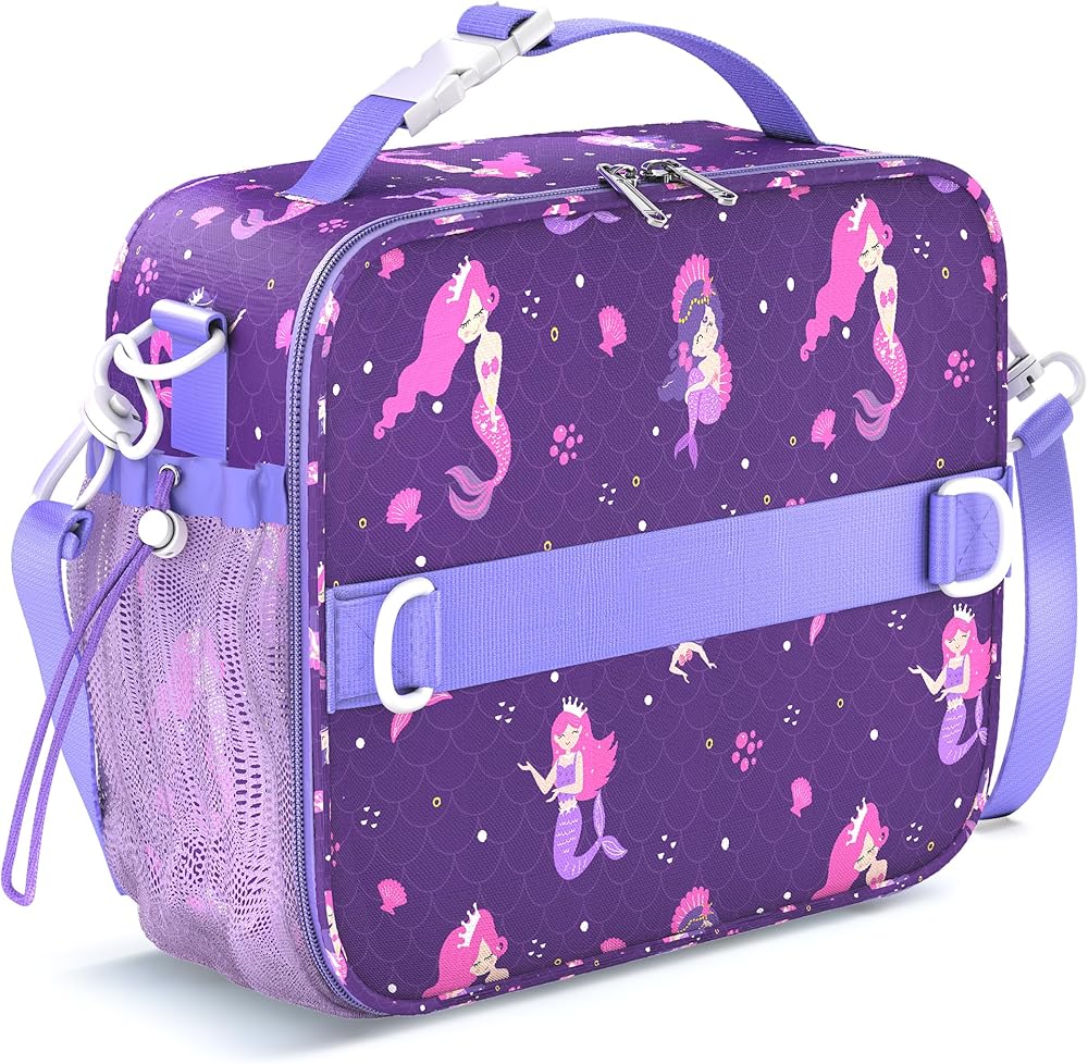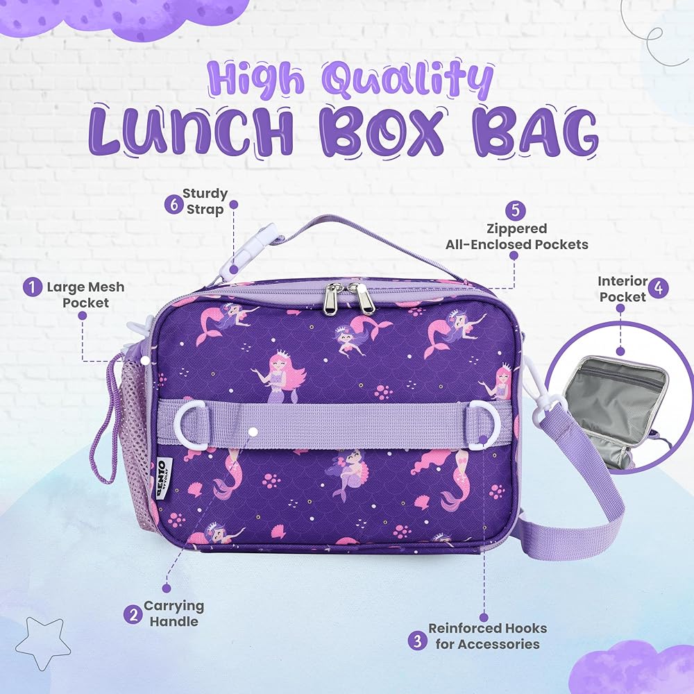 YOLAY Kids Double Insulated Lunch Bag for Girls Boys - Durable Spacious With Zippered Pocket, Adjustable Straps & Handles - Bento Bag for School & Outdoor - Mermaid Smart