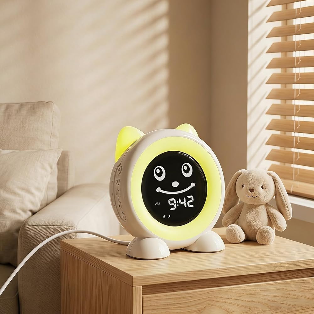 【TIME TO WAKE AND SLEEP】It's a fun and simple way to tell kids when it's time to wake up and sleep,so parents get more sleep,no more early morning wake up calls! Attractive color lights are designed to help your kids sleep better and feel safe when sleep in the dark! Wake up light function will wake kids up with nature-inspired sounds in a pleasant way