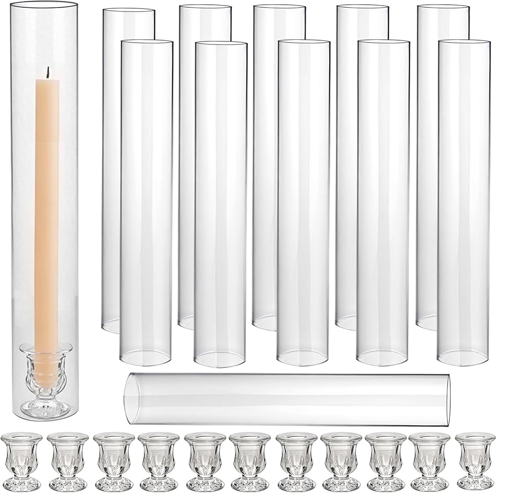 [Elegant Versatile Design]: Crafted from premium clear glass, CHILL RECIPE 14" tall hurricane candle holders combine elegance with modern functionality. Their sleek cylindrical chimney shape accommodates taper candles, floral arrangements, or LED lights, making them perfect for weddings, birthdays, Christmas decor, or everyday home styling. The crystal-clear glass enhances any decor theme while protecting flames from drafts.