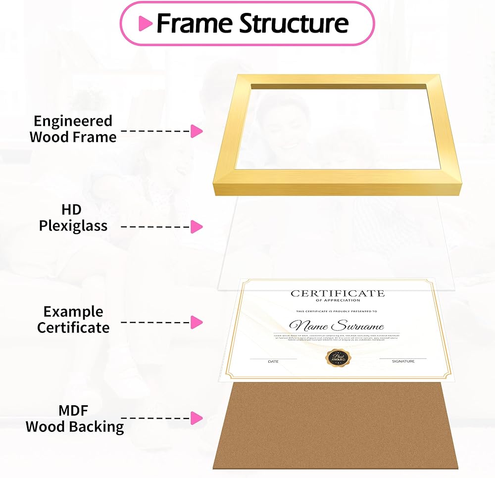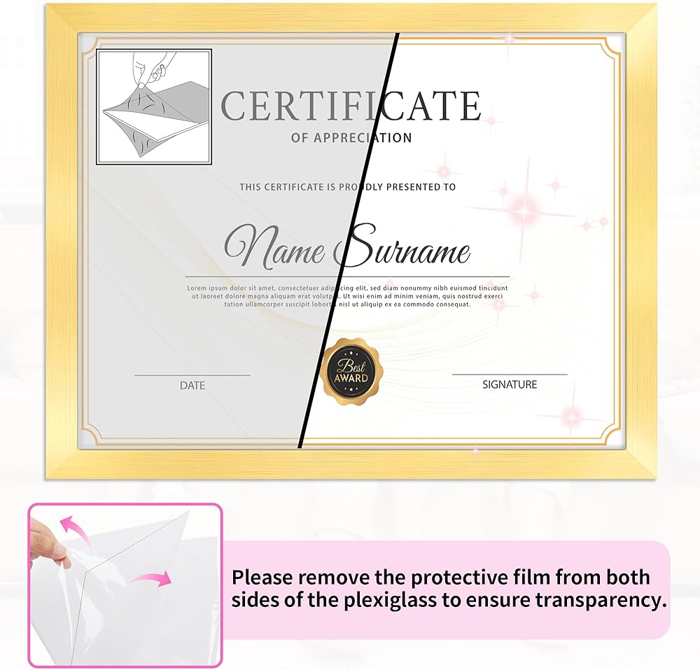 LIGHTWEIGHT & CLEAR: Crafted from lightweight materials, this diploma frame offers sturdy protection without added bulk, making it easy to hang, move, or rearrange. The shatter-resistant plexiglass cover protects your items from dust, moisture, and accidental damage while maintaining crystal-clear visibility. The neutral black color makes it a versatile choice for coordinating with existing décor, adding a polished finish to any room.