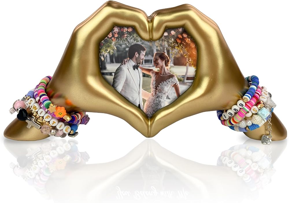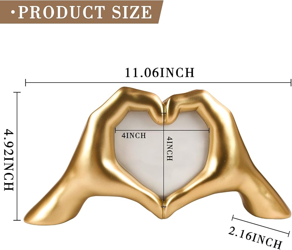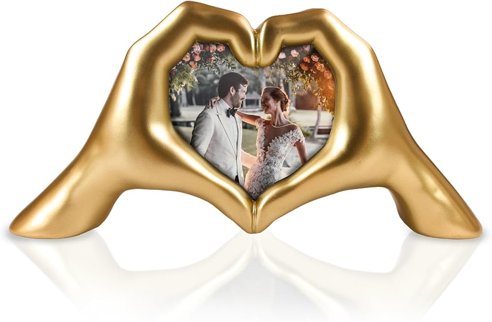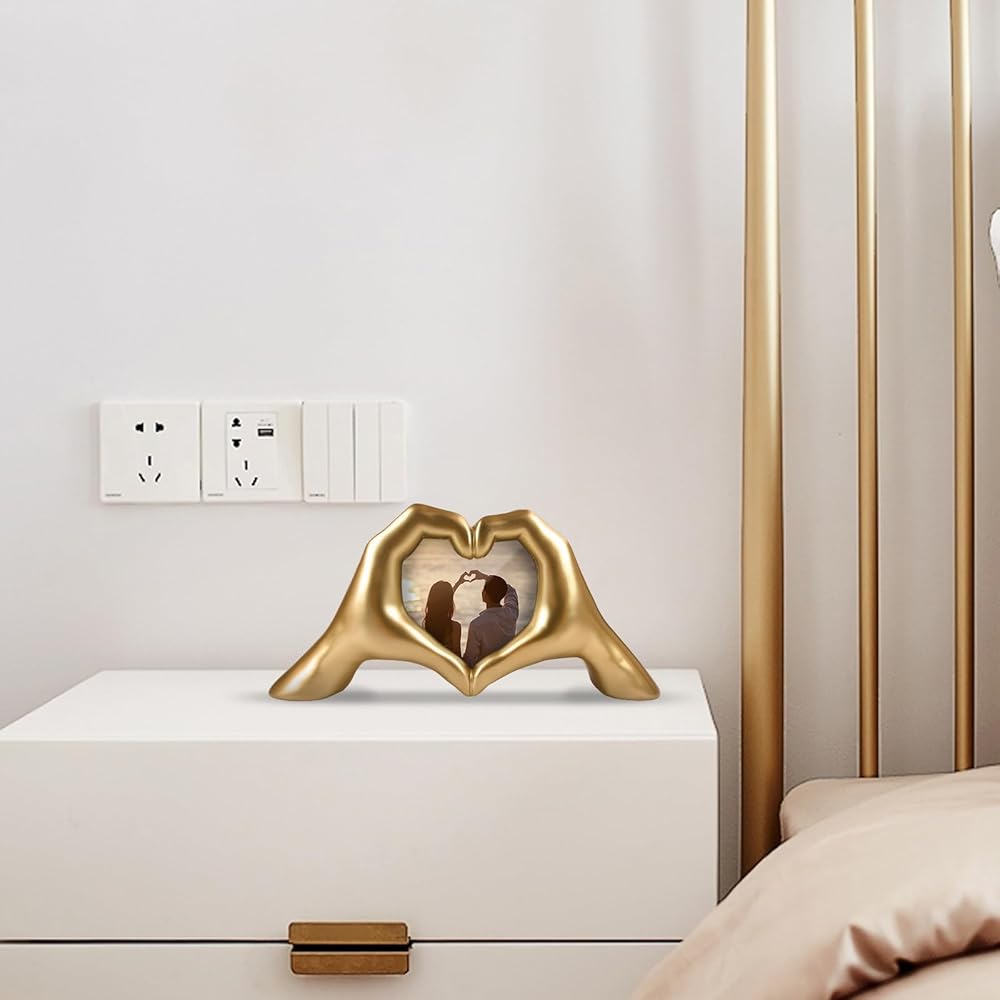 【VERSATILE DECOR PIECE】This unique frame features a heart shape formed by hands, available in both elegant gold and sleek silver finishes to suit your style. Whether you place it on your coffee table, bookshelf, bedside table, or office desk, it enhances the aesthetic of your space with its modern and artistic look.