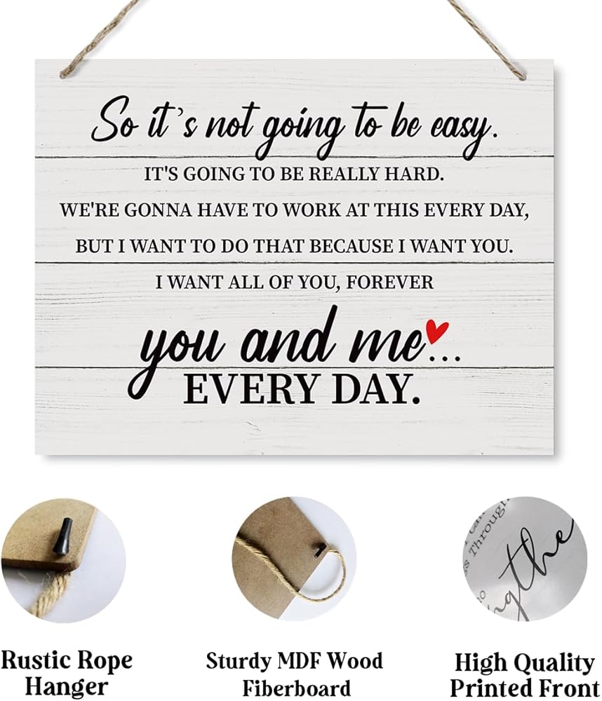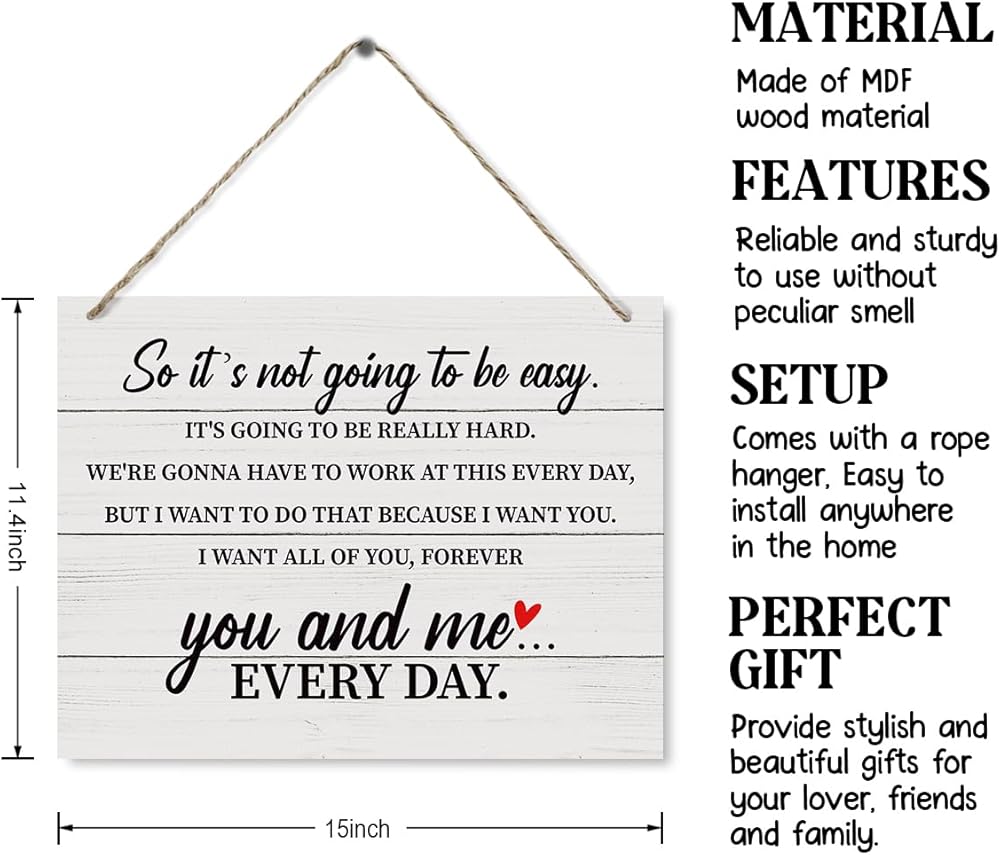 Farmhouse Wood Sign, So It's Not Going to Be Easy Sign, Decorative Wood Plaque for Hanging, Master Bedroom Decor, Bedroom Wall Art, Romantic Home Decor, Rustic Wooden Plaque with Hanging Rope