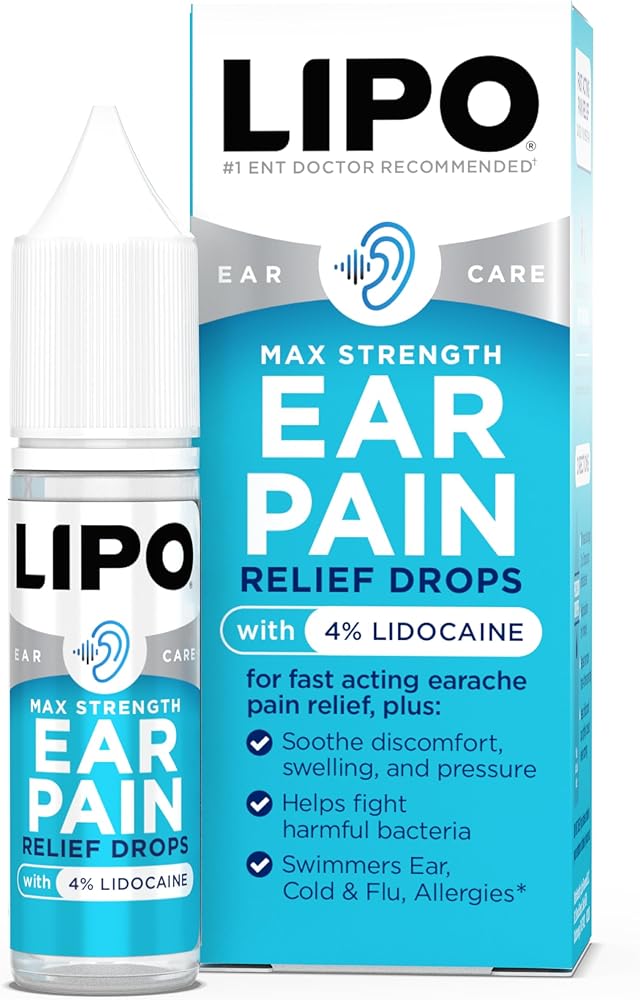New Lipo Flavonoid Ear Pain Relief Drops provides fast acting soothing relief from earaches, swelling, discomfort, and pressure, with an enhanced 4% Lidocaine pain relief formula. This trusted ear care solution also helps to dry water-clogged ears, gently flush ear wax and debris. Safe and effective for both children and adults, this product is recommended by ENT doctors as the top choice for ear pain relief.