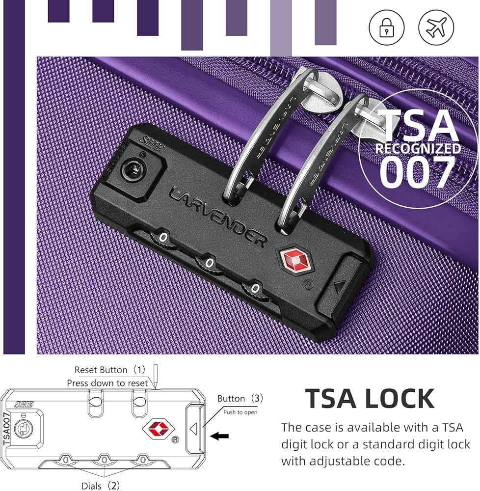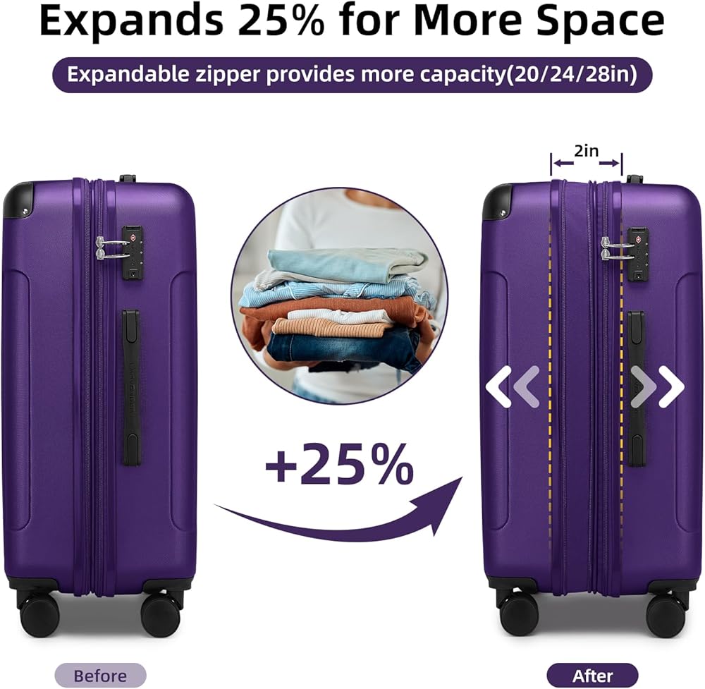 Luggage with TSA Lock for Secure Travel: Stay safe and hassle-free with our TSA-approved combination locks. Zippers are not easy to be pierced by sharp tools, such as pens, that protects your stuffs in luggage and privacy more better. Full-zip interior divider and cross straps for increased packing organization