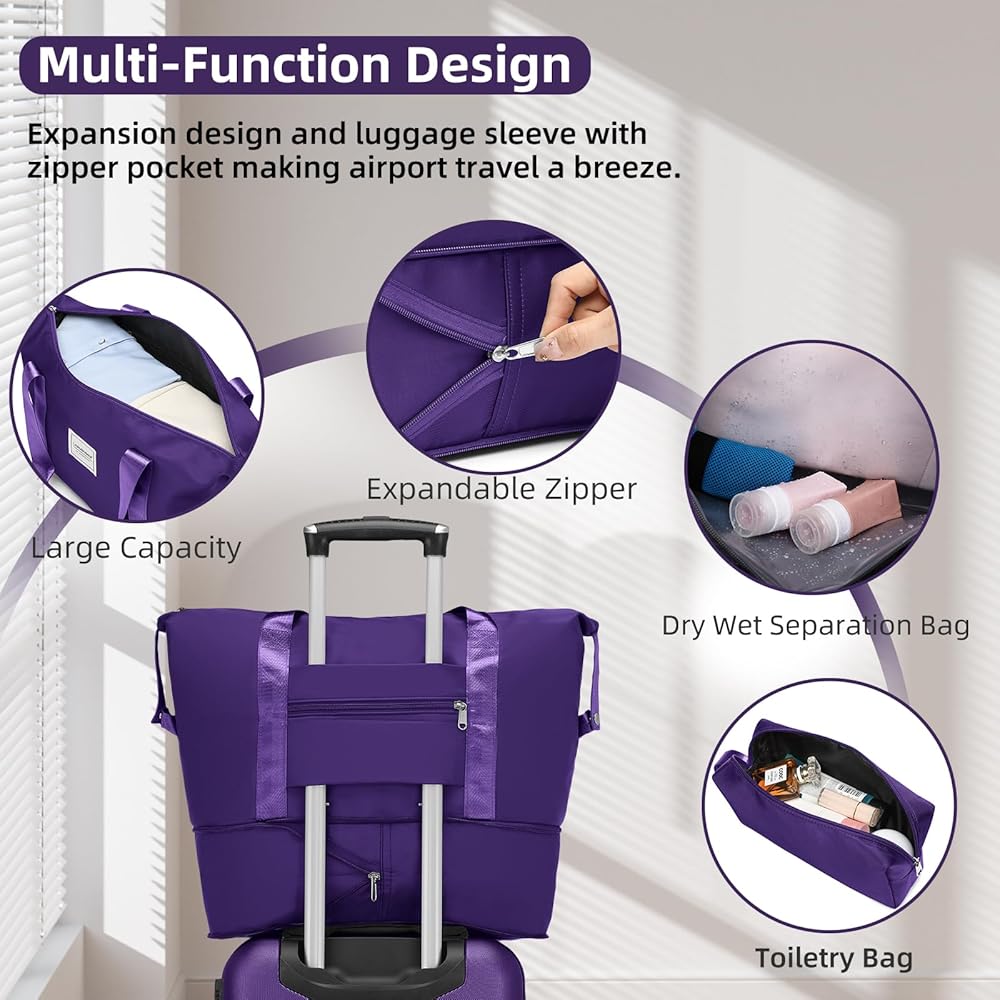 Expandable Carry on Luggage with Backpack: 3-piece set includes 20inch expandable carry on luggage 22x14x9 airline approved (Expands for extra 25% packing capacity), a travel backpack and a toiletry bag. The suitcase meets most American International Airlines' carry-on luggage size requirements