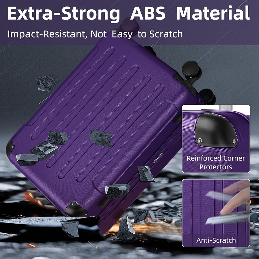 Hardshell Luggage Sets: Crafted from lightweight yet extremely durable ABS materials. Our luggage seamlessly blends classic elegance with modern features, while the addition of 2 round corner protectors safeguards your belongings against damage