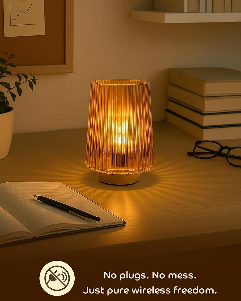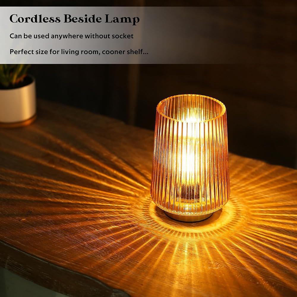 🌼【DECORATIVE GLASS TABLE LAMP】 Our battery operated lamp is made of high quality glass, which features a modern elegant style and is more valuable. Different from plastic table lamps, it is more durable in daily use. You can decor your home by putting this modern lamp any where and when you turn on the cordless lamp, it emits beautiful luminous light and adds romance to your home. Must be a nice addition for your bedroom and hallway...