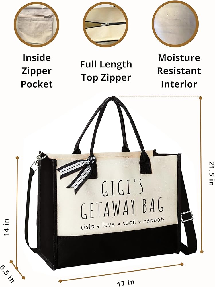 HUGE CAPACITY & MULTIPLE USES: Bring more personality and practicality to your life with this Christmas Gift for Grandmother Bag. The enormous capacity (17"L x 14"H x 6.5" W) is enough to hold daily essentials including groceries, food, clothes, shoes, makeup, a laptop, magazines, ... It can be used as a gym bag, beach bag, shopping tote, or travel tote. Excellent for road trips, picnics, and weekend getaways...