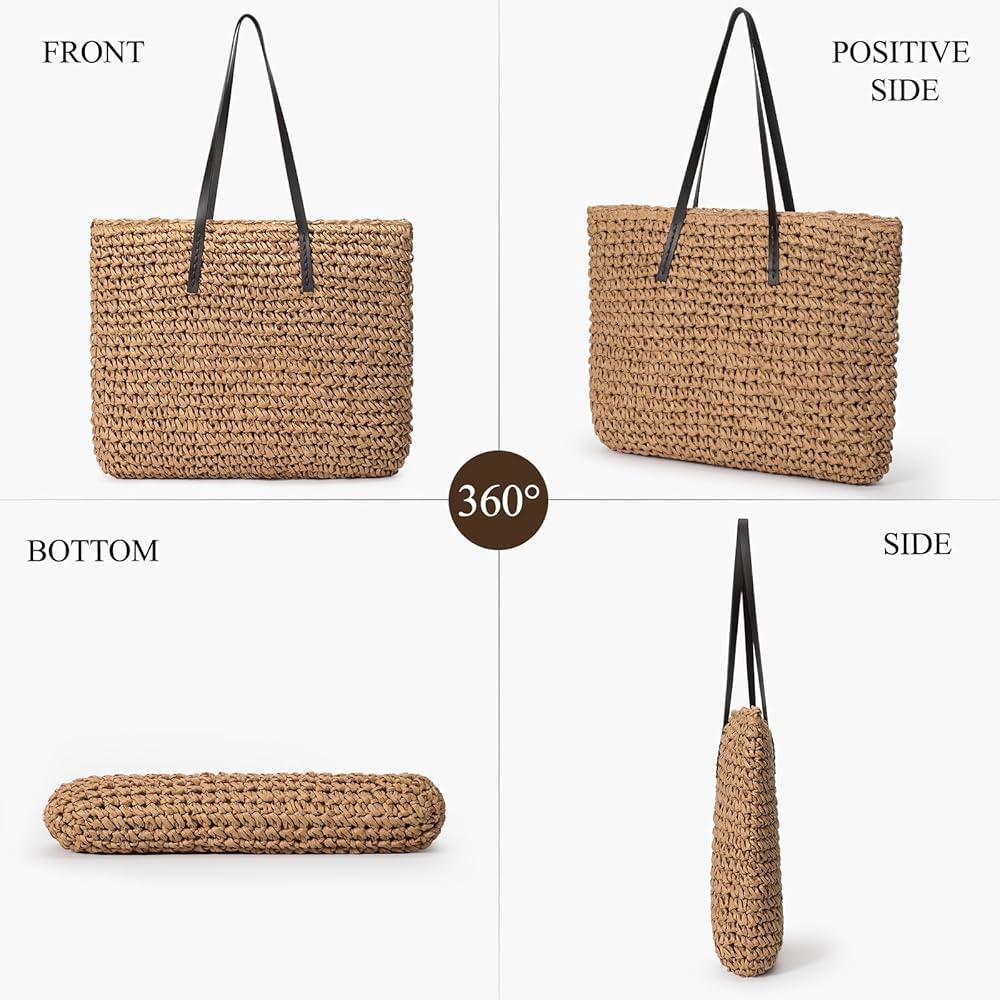 LIGHTWEIGHT/HIGH QUALITY - This woven beach bag is made of high quality straw, lightweight, soft and comfortable, but not easy to break.