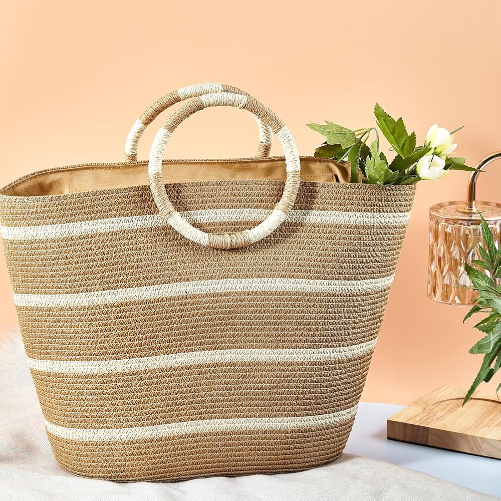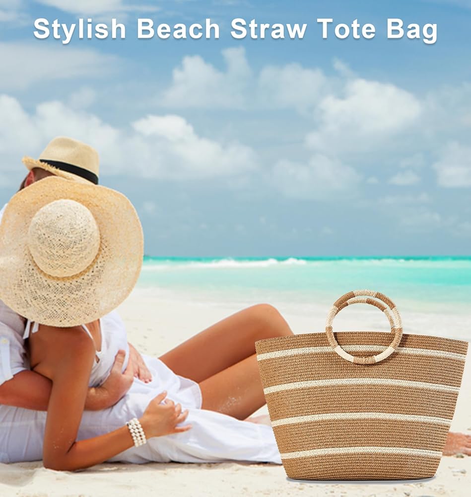 Large Capacity for Summer Essentials: Designed with large capacity, our straw bag is large enough to hold lots of essentials such as cell phones, wallets, laptop, water bottles, foldable hats, sunglasses, cosmetics, umbrellas, slippers or other personal belongings.