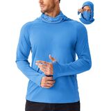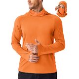 【Advanced Practical Designs】Our SPF Fishing Hoodie Shirt is equipped with a convenient sun-blocking hood with mask, keeps you away from dust and bugs.The thumbholes to keep sleeves securely in place and gives extra coverage for sun protection.The hidden side zipper pocket for hiking shirt men which has enough capacity to put your personal belongings, such as your phone, wallet, etc.