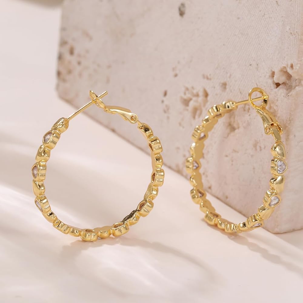 PABBEU S925 Sterling Silver Hoop Earrings for Women Cubic Zirconia Hypoallergenic Lightweight Dainty Heart Large Silver Hoop Earrings for Women 30/40mm
