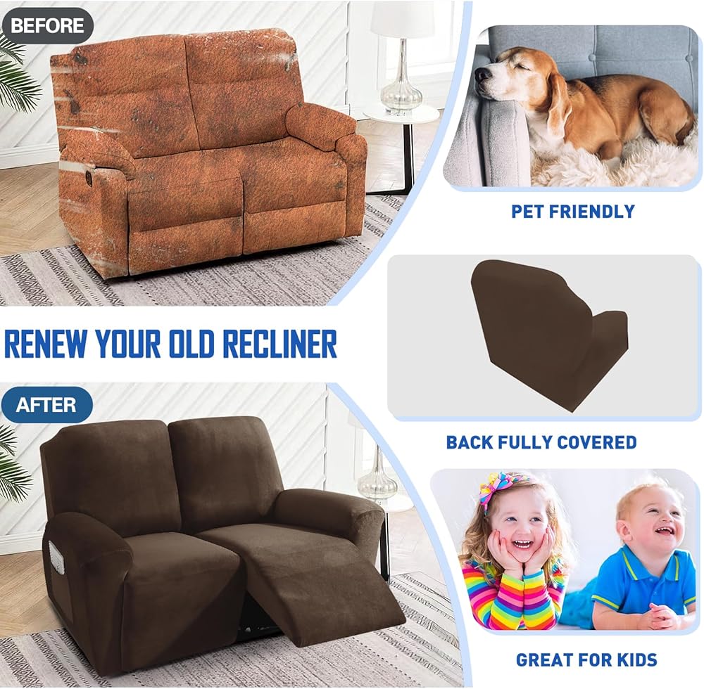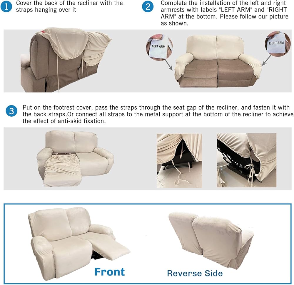 NON-SLIP: Due to the unique stretchy velvet fabric, our anti-slip stretchable cover for recliner chair can fully stretch and cover every parts of your recliner easily. The non-slip elastic band at the bottom would wrap your recliner firmly without sliding, keep in place exactly where you want. Besides, due to the unique sewing technology of our high stretch recliner slipcover, it's very easy to take off the cover, more convenient for you to wash the recliner cover regularly