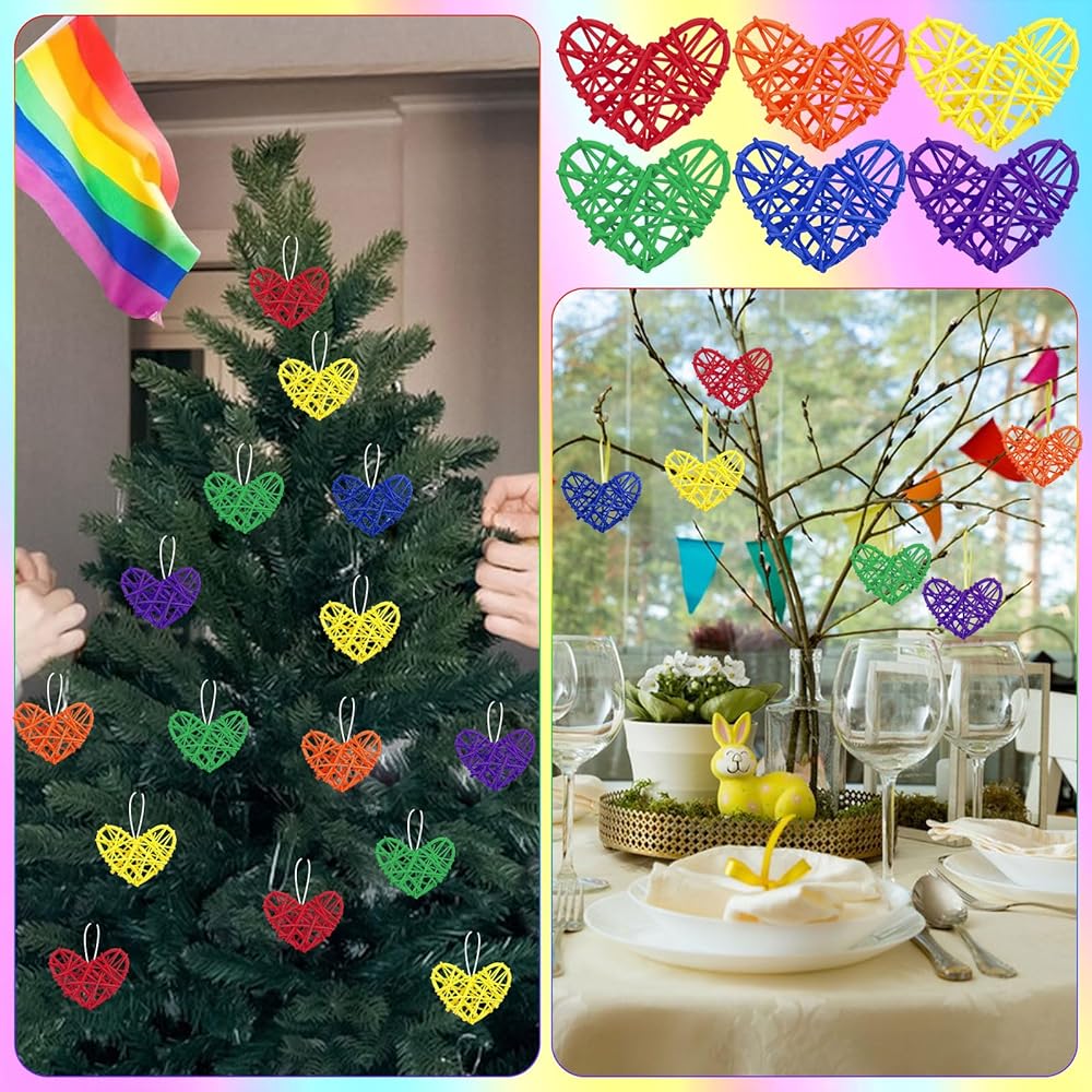 NOVWANG 36 Pcs Gay Pride Rattan Balls Decorative,Centerpieces Vase Filler Rainbow Heart Wicker Ball for LGBT Festival Party Pride Day Wedding Decoration Table Hanging Decor DIY Crafts