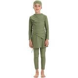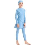 Girls Rash Guard Swimsuit: Little big girl Muslim swimsuits long sleeve solid ruffle beach surfing outfit modest Islamic swimwear full length active burkini swimsuit. High stretchy waistband swimming pants tight leggings, adjustable inner ties, allows for a secure and flexible movement when swimming. Matching swimming cap hijab offer enough protection to the head. Full cover burkini can offer a total coverage to the body, and protect the sensitive skin from sunburn and biological scratch.
