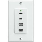 Magnadyne Wall Mount USB-C & USB-A Charging Ports for RV & Vehicle Use, New Model, Includes Wall Plate (Black)