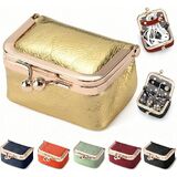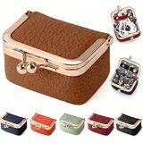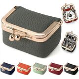 Perfect for both home storage and travel, this compact organizer keeps your precious pieces secure and organized. The small yet efficient design makes it ideal for storing rings, earrings, necklaces, and small valuables while taking up minimal space. Its versatile functionality also allows it to double as a stylish coin purse. The premium leather construction ensures durability while adding a touch of luxury to your dresser or vanity. Whether you're organizing your daily jewelry essentials or need a reliable travel companion for your accessories, this jewelry case combines practicality with elegant style. The perfect size for slipping into your handbag or suitcase, this jewelry box makes an excellent gift for the fashion-conscious woman who values both style and organization.