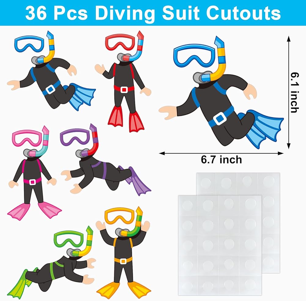 SUMMER CUTOUTS. 36 pcs summer diving suit cutouts and 36 mini dive mask cutouts, comes with 40 glue points, meet your DIY needs.