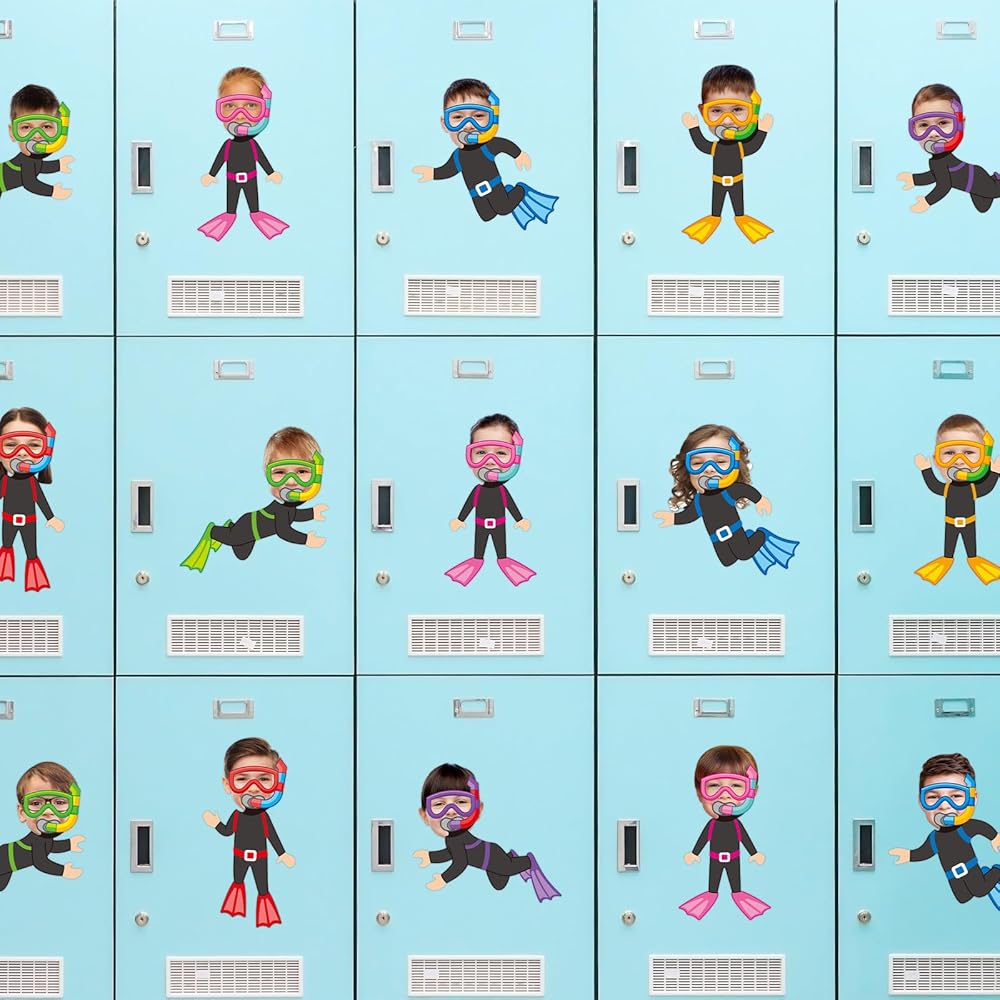 DIVING THEME DESIGN. Feature diving boys and girls' body, colorful dive mask. You can combine your photos with these cutouts, will nicely increase the fun summer atmosphere.