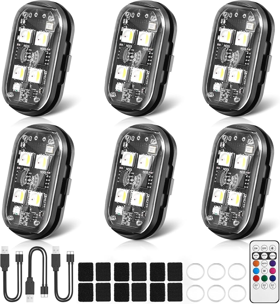【Wide Application & IP65 Waterproof】 - Suitable for a wide range of application including motorcycles, drones, cars, trucks, bikes, and boats. Built with waterproof IP65 material and comes with a waterproof plug to protect the charging port, the led strobe light can withstand outdoor elements, making them ideal for decoration, safety, camping, emergency or ambient lighting