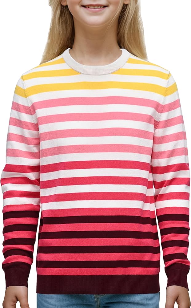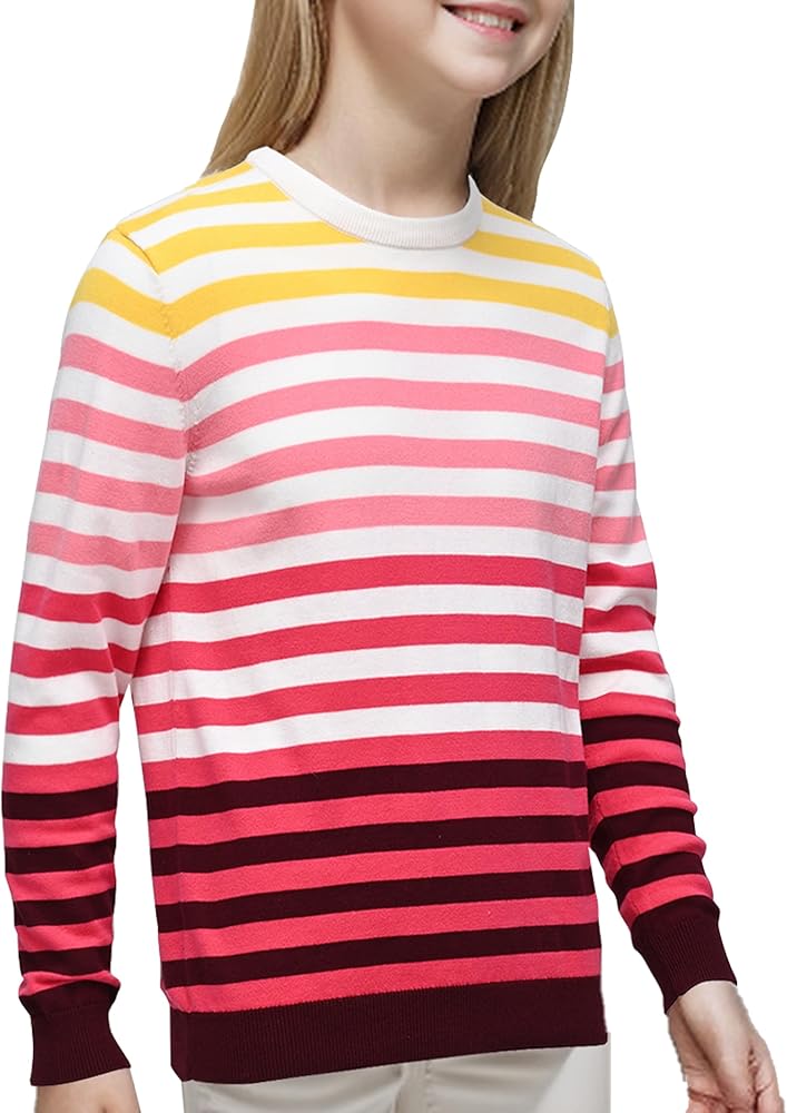 Casual Stripes Style: The classic striped pattern adds an element of cuteness and vibrancy, making it suitable for both casual and dressier events; Kids with this girls striped sweater will surely be the center of attention, enjoying compliments