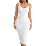 SLIGHT SHAPEWEAR DRESS FOR WOMEN: Women's bodycon dress is made with comfortable, stretchy material that controls the shape of the waist and buttocks, waist wrapping, and smooths your abdomen. This tummy control slip dress for women offers targeted compression, ensuring a flattering and streamlined silhouette while maintaining comfort