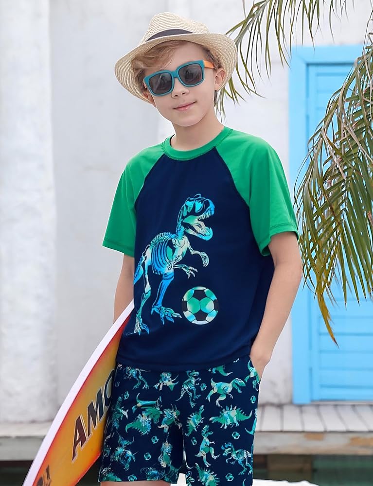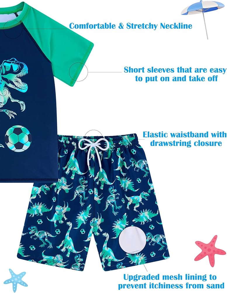 Material: Boy swim set is made from high quality, quick-drying material to ensure maximum comfort and flexibility in the water and is equipped with UPF 50+ sun protection and chlorine protection to protect your child's skin from damage