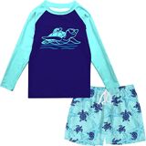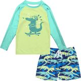 Unique Pattern Design: our boys rash guard set swimsuits with the simple cute and funny digital fade-resistant prints, this boys long sleeve swim shirts will let your boys explore freely for much more fun.this swimsuit for boys is multi-use, making it perfect for learning to swim, from paddle sports, surfing and sailing to water parks and beach trips
