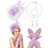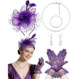 Exquisite Design:Fascinators Hat set with pearl embellishment, with mesh design, gloves are lace design, with pearl earrings, pearl necklace and pearl bracelet which are full of vintage feeling and feminine charm, you will look attractive and chic