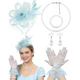 Fascinators Hat for Women:The hat is made of high - quality mesh and artificial feathers, which are lightweight and comfortable to wear, putting no pressure on your head. The short - style lace gloves are made of fine lace, which is not only delicate and exquisite but also sturdy and durable, not easy to be damaged. The pearl necklace, bracelet, and earrings are mainly made of faux pearl materials, showing classic elegance.