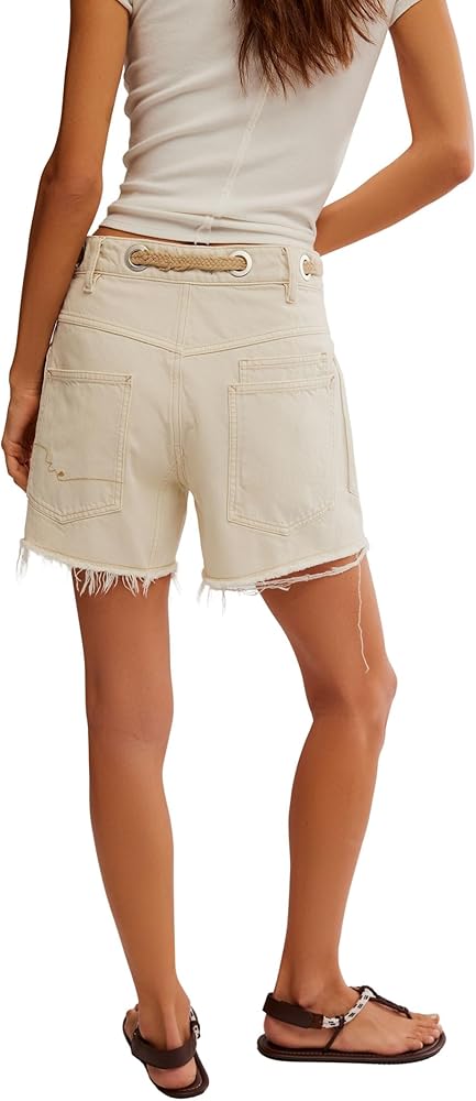 - Eyelet waist with braided tie belt, Frayed hem