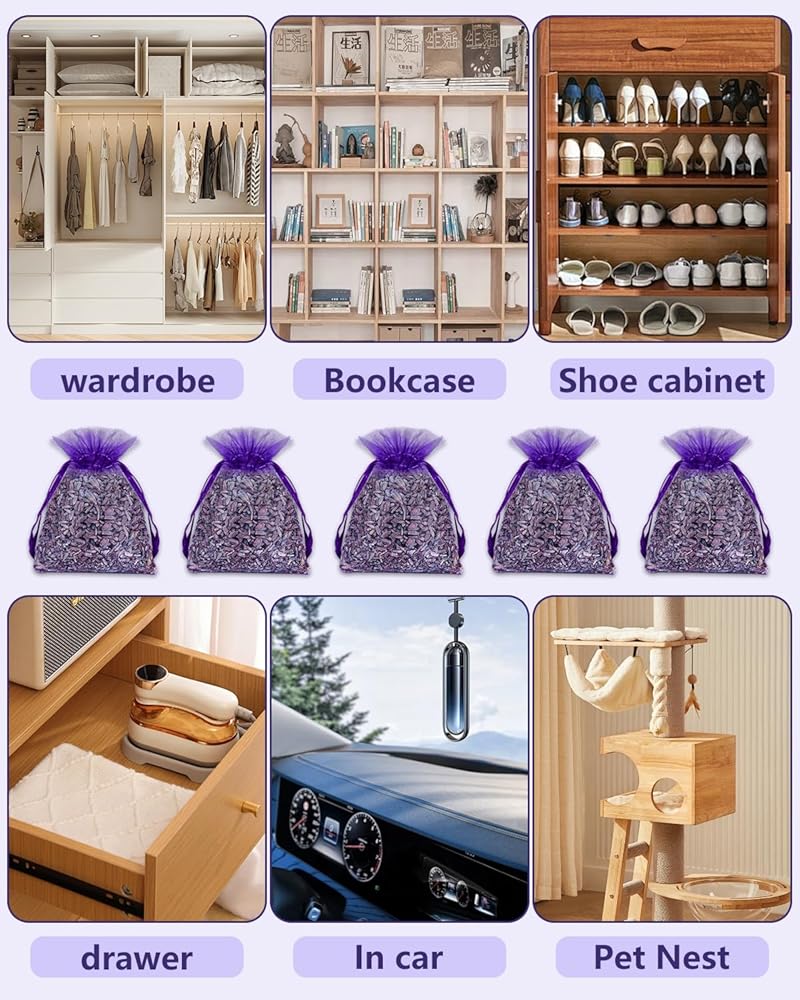 Ready to Hang and Use: This product includes 26 pre-filled lavender sachet bags that can be immediately hung in drawers and closets and used without any additional preparation. They provide a convenient and quick way to enhance the aroma and ambiance of any space with the soothing scent of dried lavender.