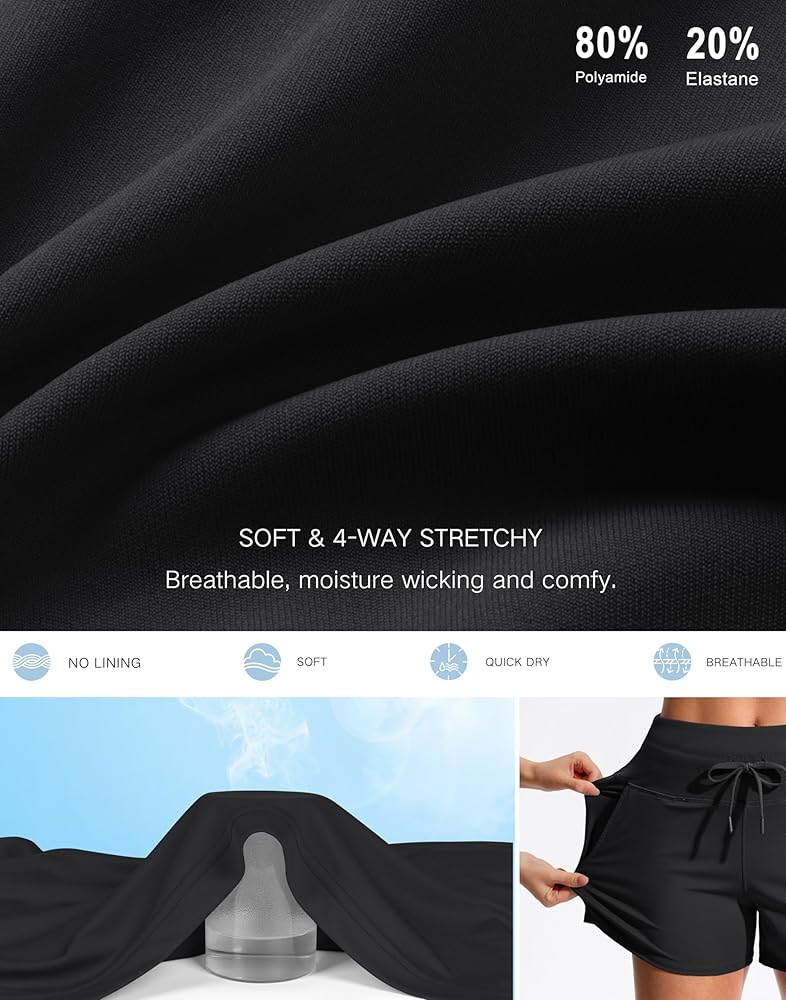 Soft & Effortless Comfort: These women's running shorts are crafted from a soft and stretchy fabric that allows for a full range of motion, ensuring comfort with every stride.The breathable,lightweight, moisture-wicking fabric designed to keep you cool and dry during your workouts.