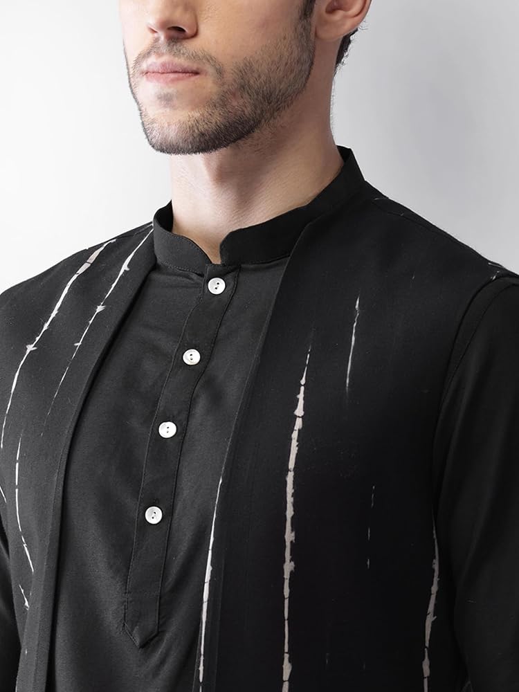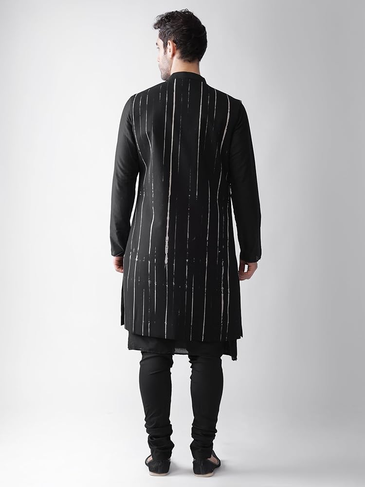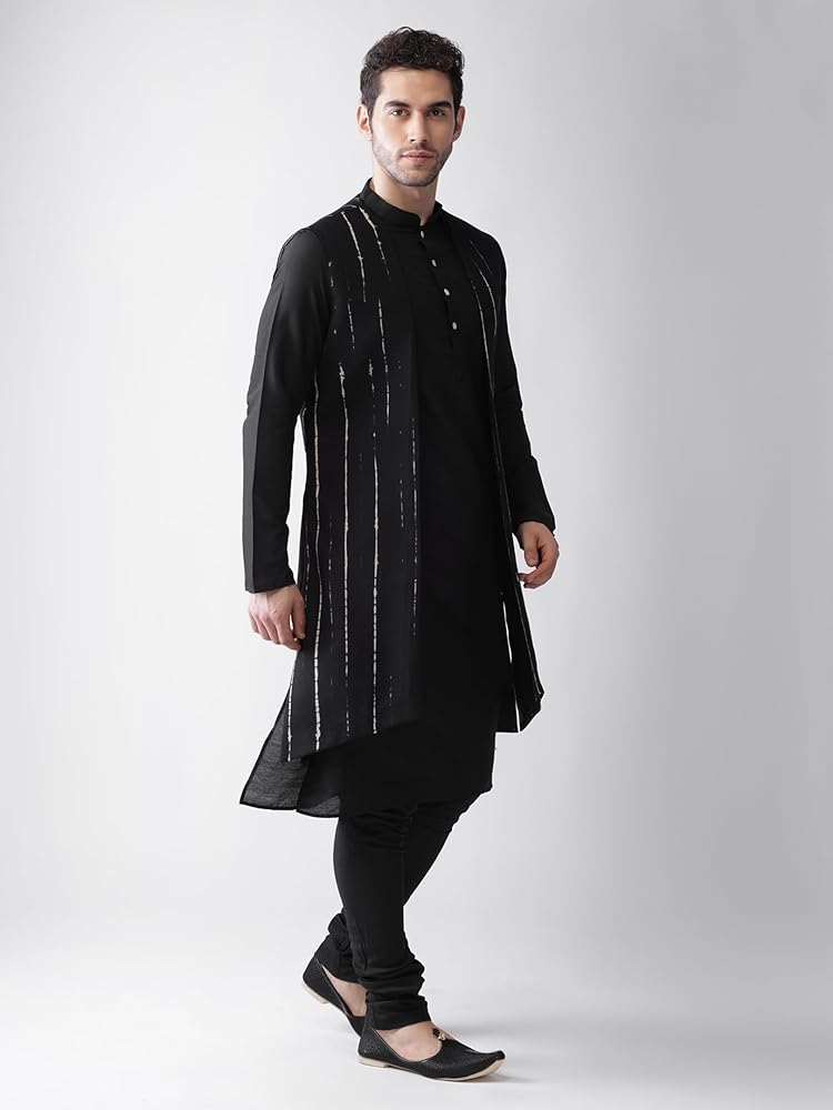 This Stylish, Ethnic and Charming Black, Printed, Blended Fabric kurta jacket set makes it an occasion wear you'll want to flaunt at any social gathering. The polished style and graceful cut will add a touch of glamour and edge to any outfit. Pair it with a sandal to complete your look.