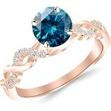 0.63 - 0.88 Carat 14K Rose Gold Twisting Infinity Gold and Diamond Split Shank Pave Set Diamond Engagement Ring with a 0.5 Carat Blue Diamond Center (Heirloom Quality)