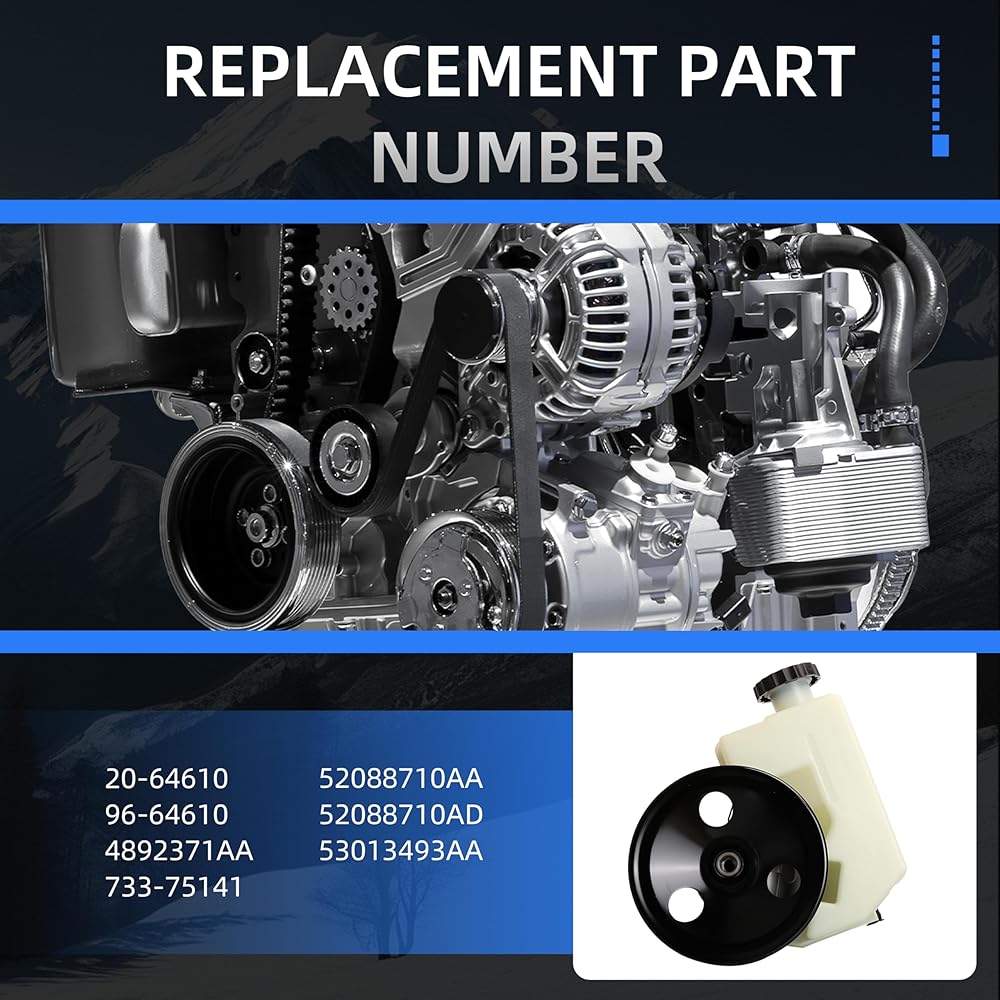 - Vehicle Fitment : 20-64610 Power Steering Pump with Pulley Compatible With Jeep Liberty 2002-2006