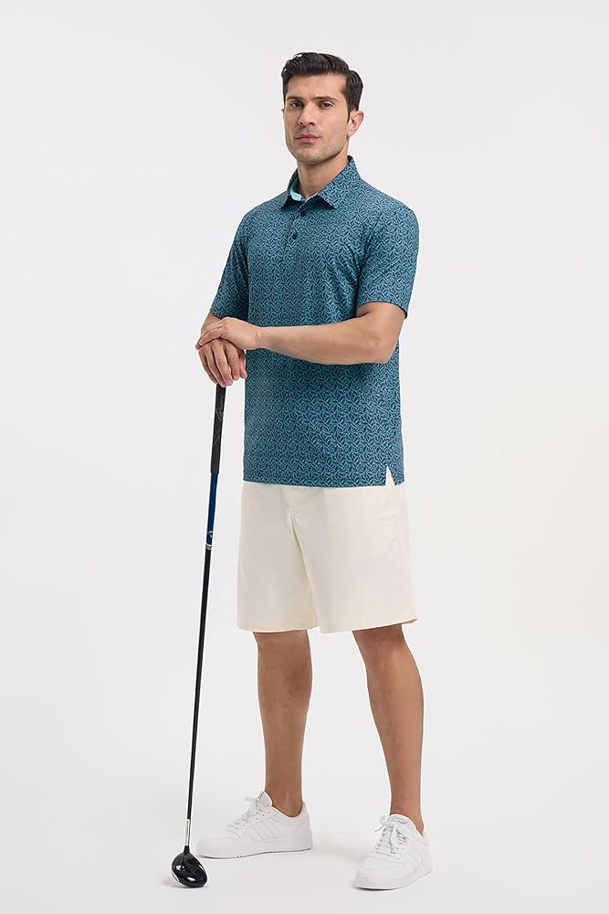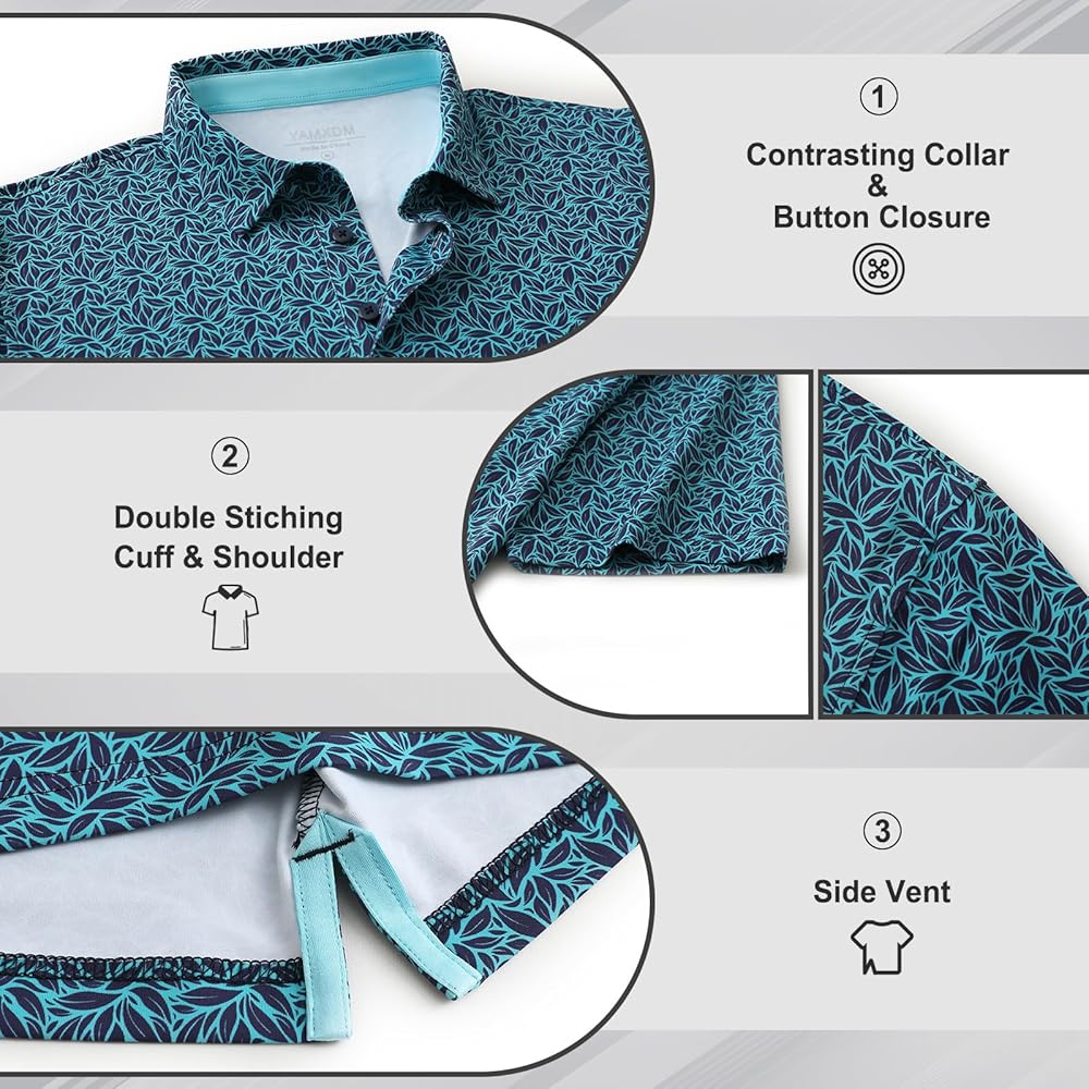 Premium Fabric: This men's polo shirt crafted from a soft, stretchy polyester-spandex blend, has enough elasticity to let you swing freely and move freely. Mens golf polo resistant to wrinkles, fading, and shrinkage, it maintains a crisp appearance wash after wash
