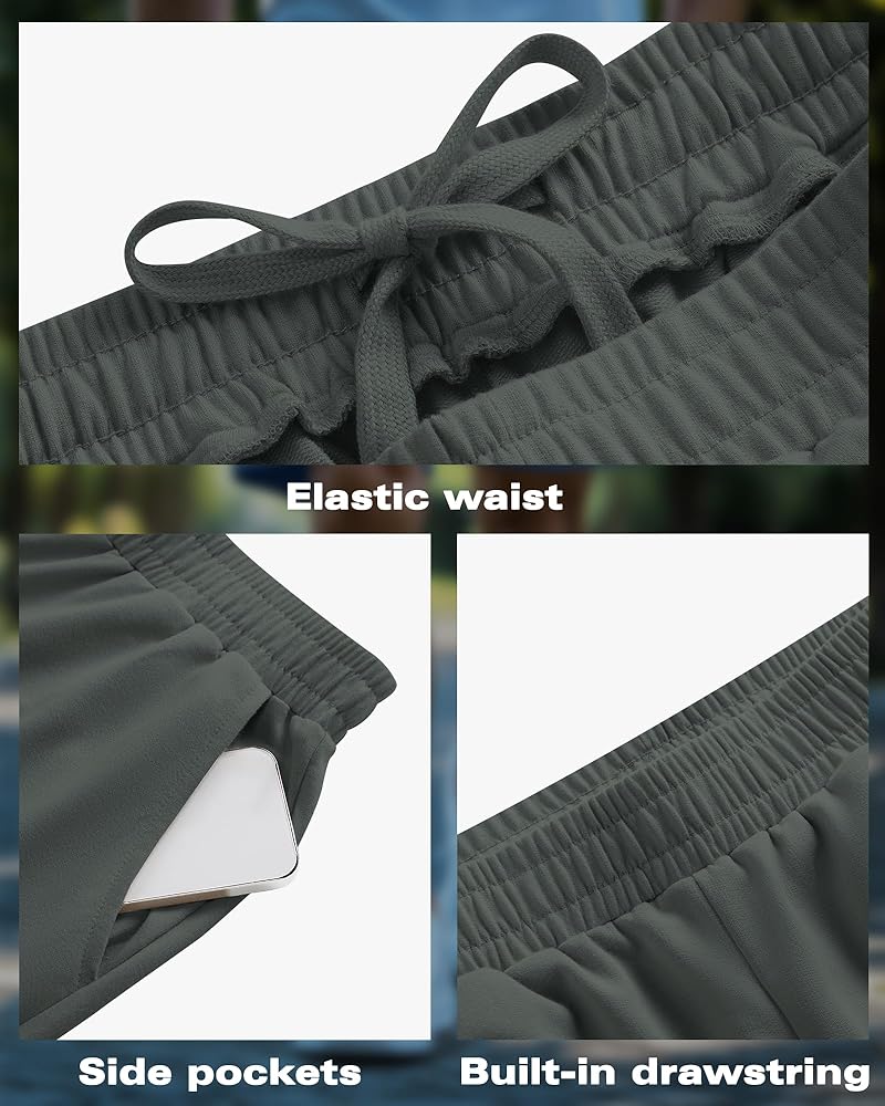 Practical Design: these men's running shorts have an elastic waistband, drawstring, loose fit, above the knee length, wide legs, and pockets to fit the body but not tight, reducing the sense of restraint