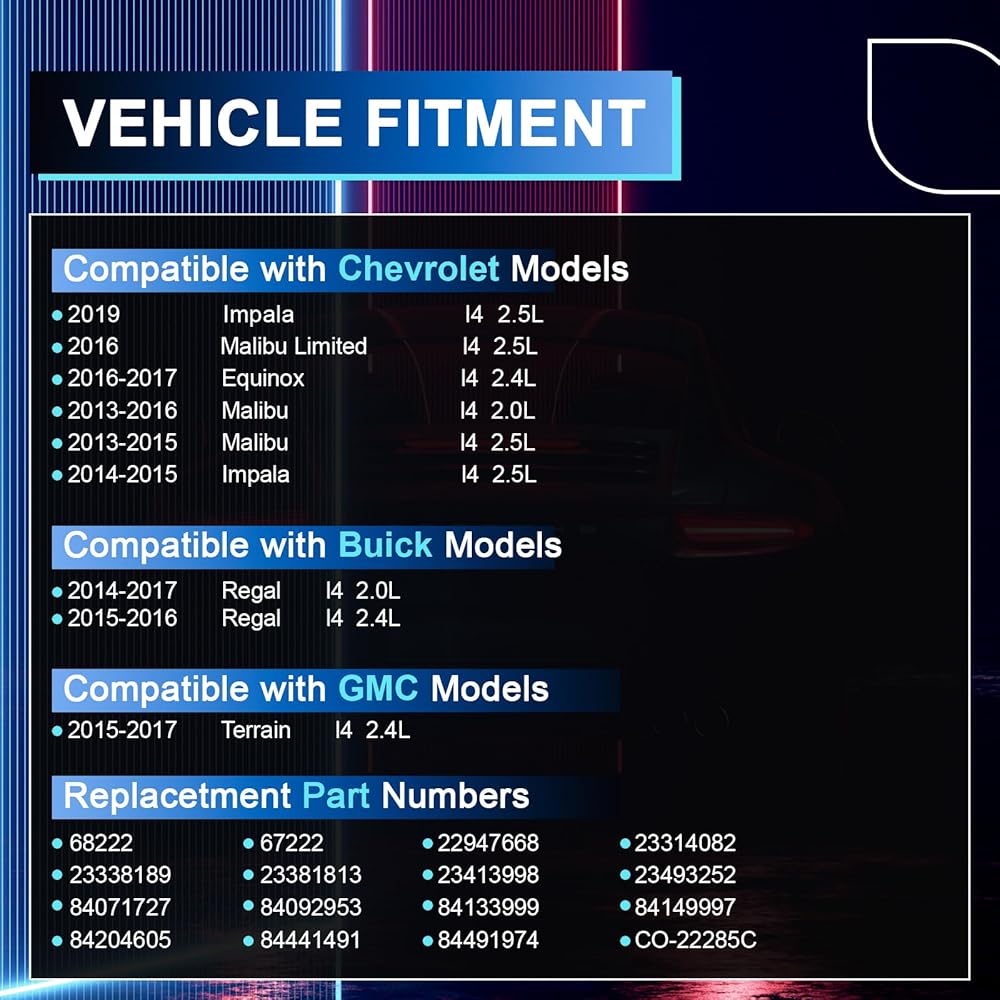 ❄️【Vehicle Fitment】- AC Compressor Compatible with 2019 Chevrolet Impala l4 2.5L,2016-2017 Chevrolet Equinox l4 2.4L,2013-2016 Chevrolet Malibu l4 2.0L,2016 Chevrolet Malibu Limited l4 2.5L,2014-2015 Chevrolet Impala l4 2.5L,2013-2015 Chevrolet Malibu l4 2.5L,2014-2017 Buick Regal l4 2.0L,2015-2016 Buick Regal l4 2.4L,2015-2017 GMC Terrain l4 2.4L.Please see photos and compare to your original compressor prior to ordering!