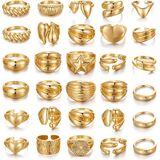 CHUNKY GOLD JEWELRY: One order includes 20 pcs different style rings, twisted ring, dome ring, croissant ring, band ring, etc. These gold rings can be worn alone or stacked with other rings