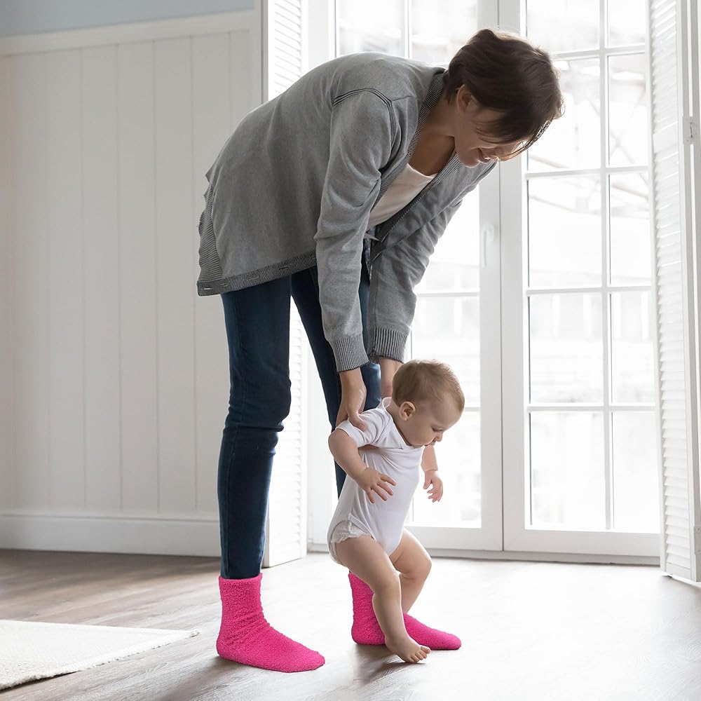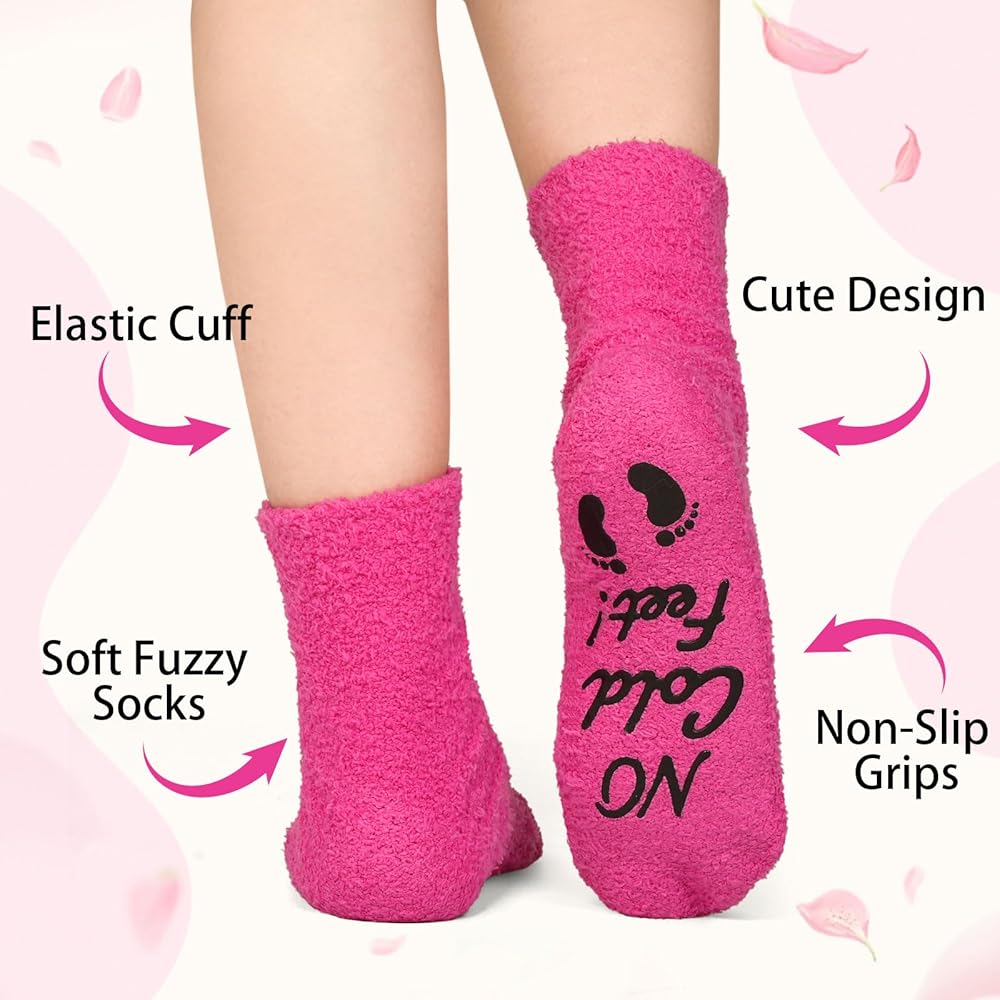 Size and Fabric: One Size fits women's shoe sizes 6-10 by good elasticity. These cozy and warm fuzzy socks for women are made of polyester. Non Slip grip dots on the sole of socks against slipping while walking with no shoe, perfect for lounging at home as slipper socks. What a nice present it is