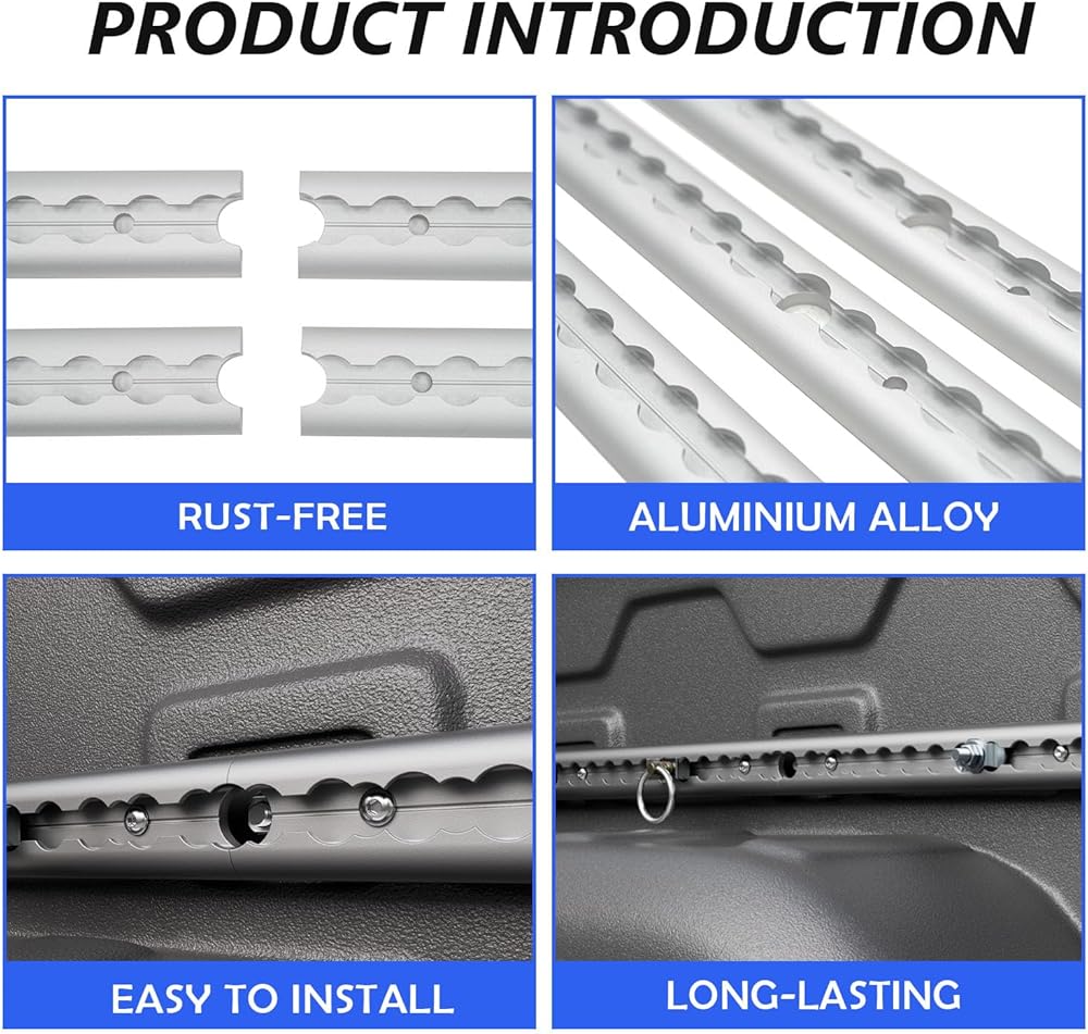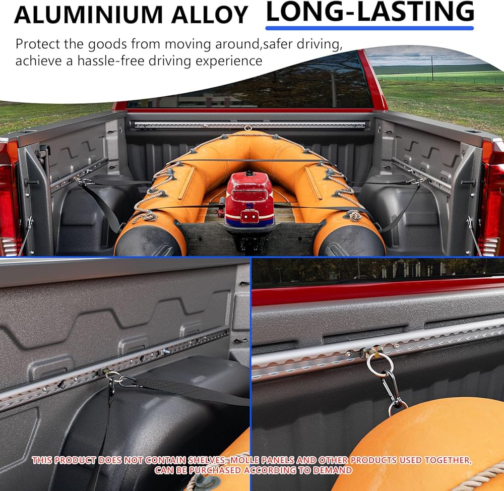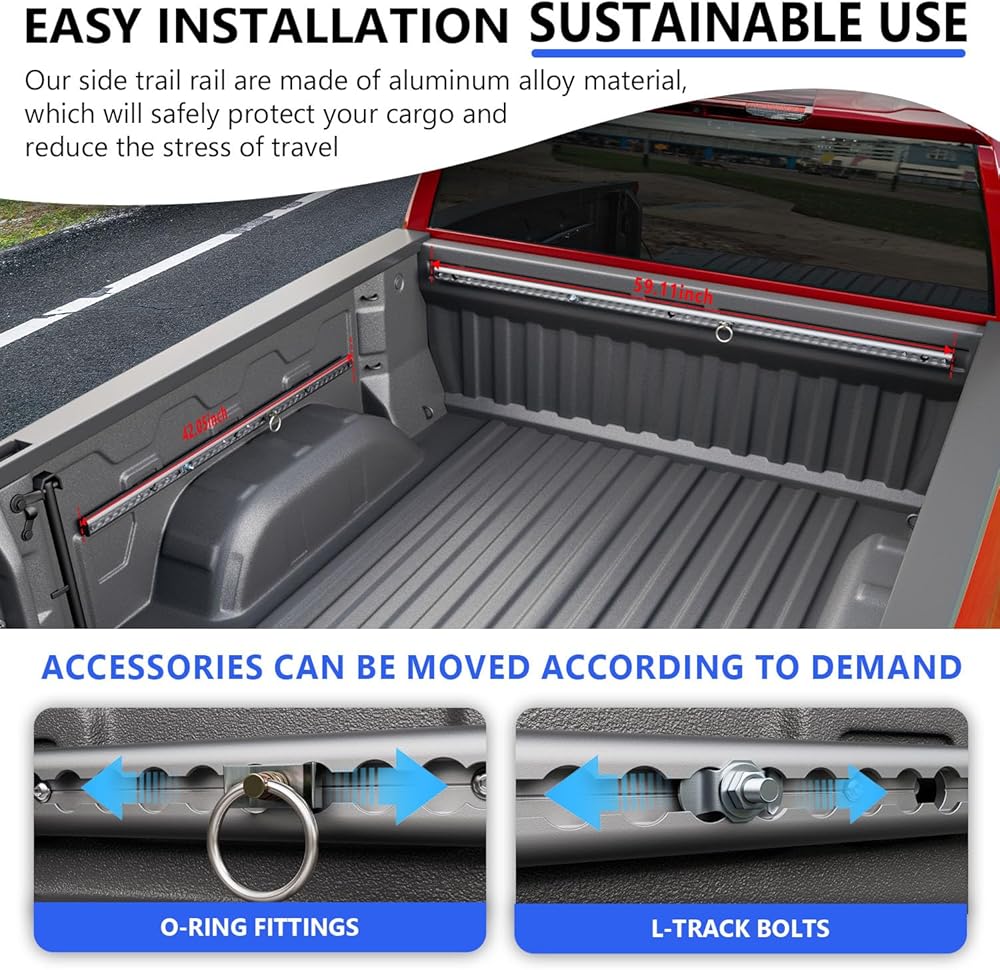 Premium Material Quality: The rail system compatible with Chevy Silverado and GMC Sierra 1500 side bed rail is made of heavy aluminum alloy, which is super sturdy and long-lasting. It's not afraid of sun exposure, rain, and can withstand collisions and scratches during daily cargo handling, maintaining a good condition for a long time, saving you the trouble.